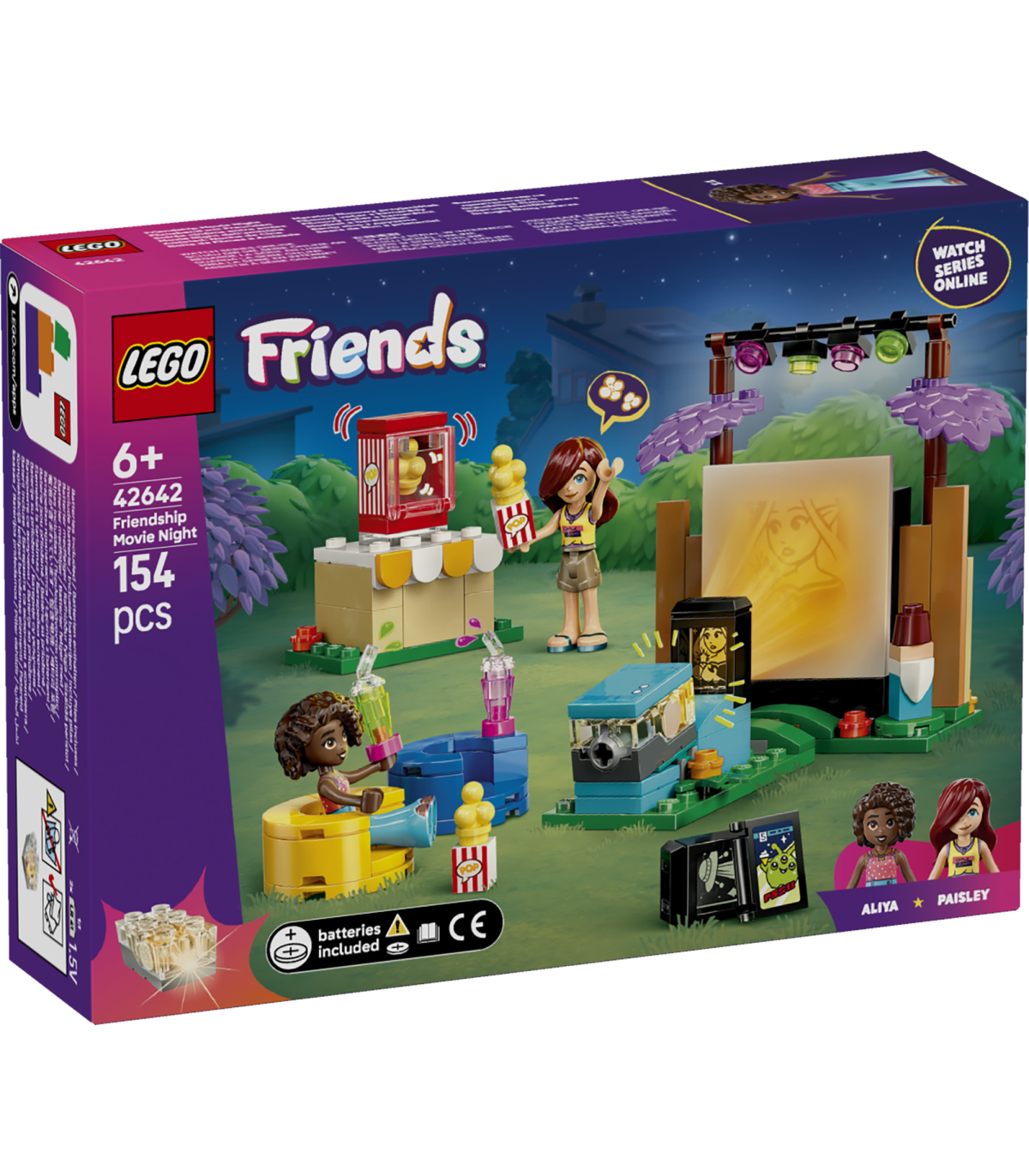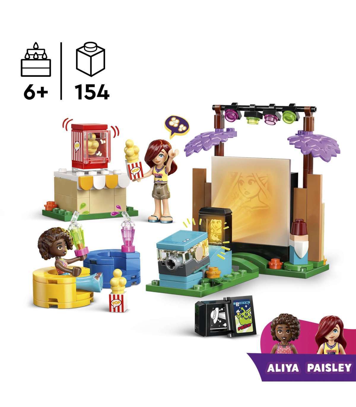 • 2 LEGO® Friends tegelaskuju – selle matkimismängukomplektiga on kaasas Paisley ja Aliya mininukud, mis in nustavad lapsi looma erinevaid seltskondlikke olukordi, kui sõbrad Paisley aias filme vaatavad