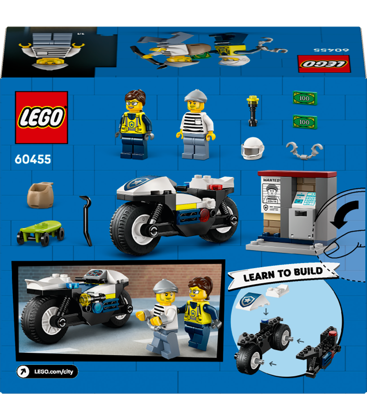 • Mis on karbis? – Komplektis on kõik, mida lapsed vajavad politseimootorratta, rula ja sularahaautomaadi ehitamiseks, ning politseiniku ja rulataja minifiguurid rollimänguks