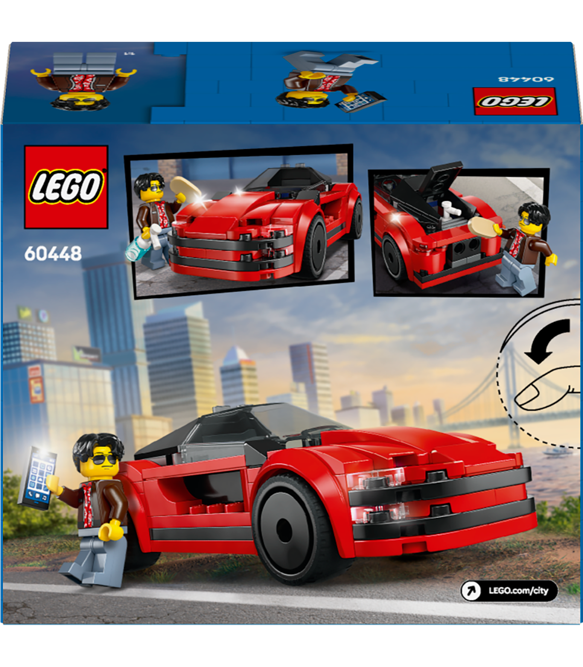 • Mis on karbis? – Sisaldab kõike, mida lapsed vajavad punase sportauto ehitamiseks koos juhi minifiguuriga