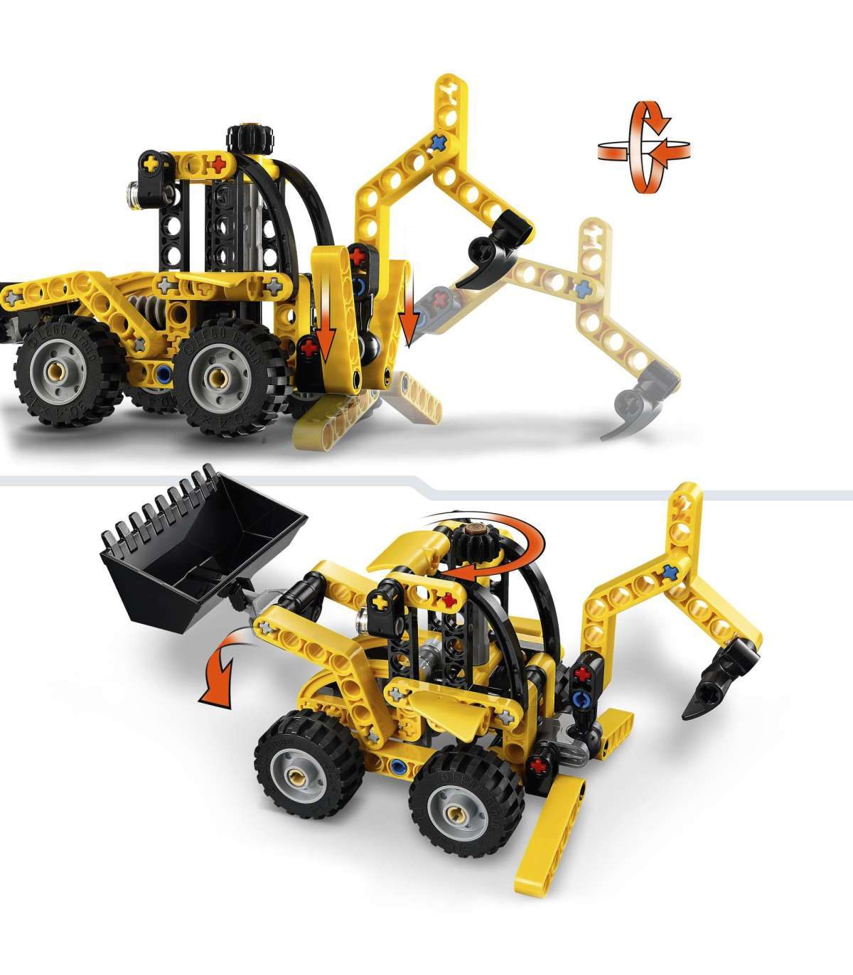 • Proovi kühvlit ja koppa – LEGO® Technic laadurekskavaatori mudel sisaldab kühvlit, mida lapsed saavad nupu abil tõsta ja langetada, tagumist kaevamiskoppa ja tugijalgu