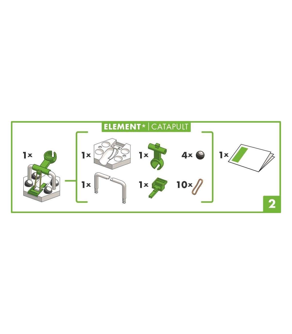 Komplektis: katapult, neli kuuli, 10 kummi ja juhend.