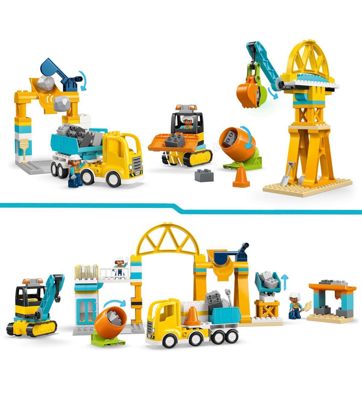 KOLM ÜHES LEGO® DUPLO® KOMPLEKT – Väikelastel on lõputult mänguvõimalusi, kui nad ehitavad ja ümber ehitavad silla, mille alt veoautod saavad läbi sõita, laadimisjaama, liikuva poomiga kraana ja kopa
