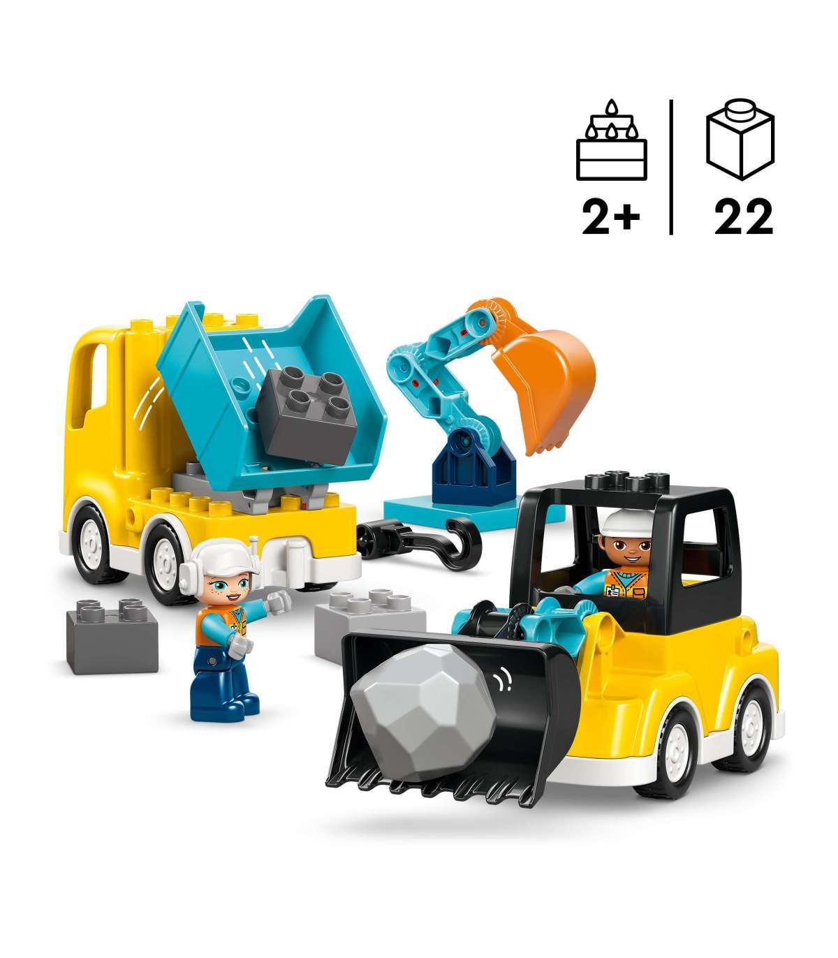 Mängi ehitustöölist – Komplektis on kaks ehitustöölise mängufiguuri, mida väikelapsed kasutavad sõidukite juhtimiseks, et töö saaks tehtud