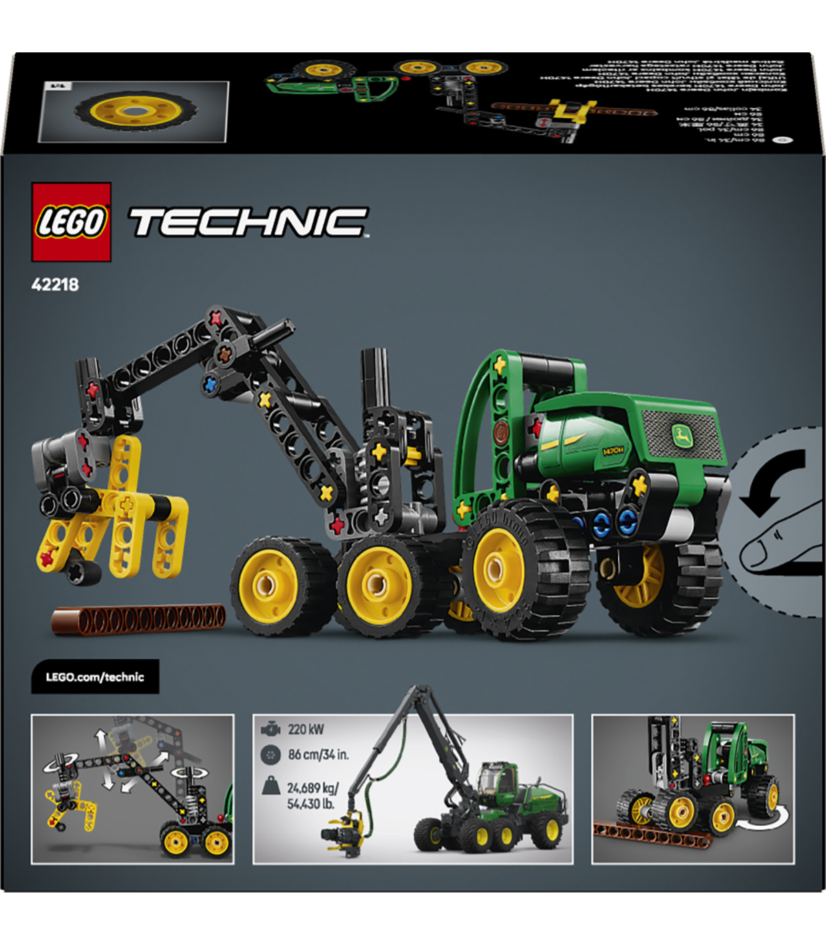 Harvesterimänguasi – LEGO® Technic John Deere 1470H ratastega harvester (42218) pöörleva poomi ja töötava haaratsiga 7-aastastele ja vanematele poistele, tüdrukutele ja lastele, kes armastavad ehitussõidukeid