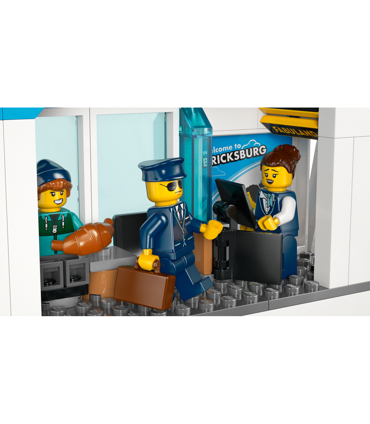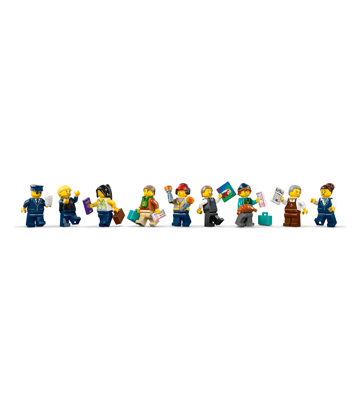 MINIFIGUURI TARVIKUD – Selle lennujaama mängukomplektiga kaasas on LEGO® tarvikud, sealhulgas 3 kohvrit, 2 pardakaarti, marsruutimiskepid, päevalille kaelapael, pass, ajaleht, kaart ja sarvesai