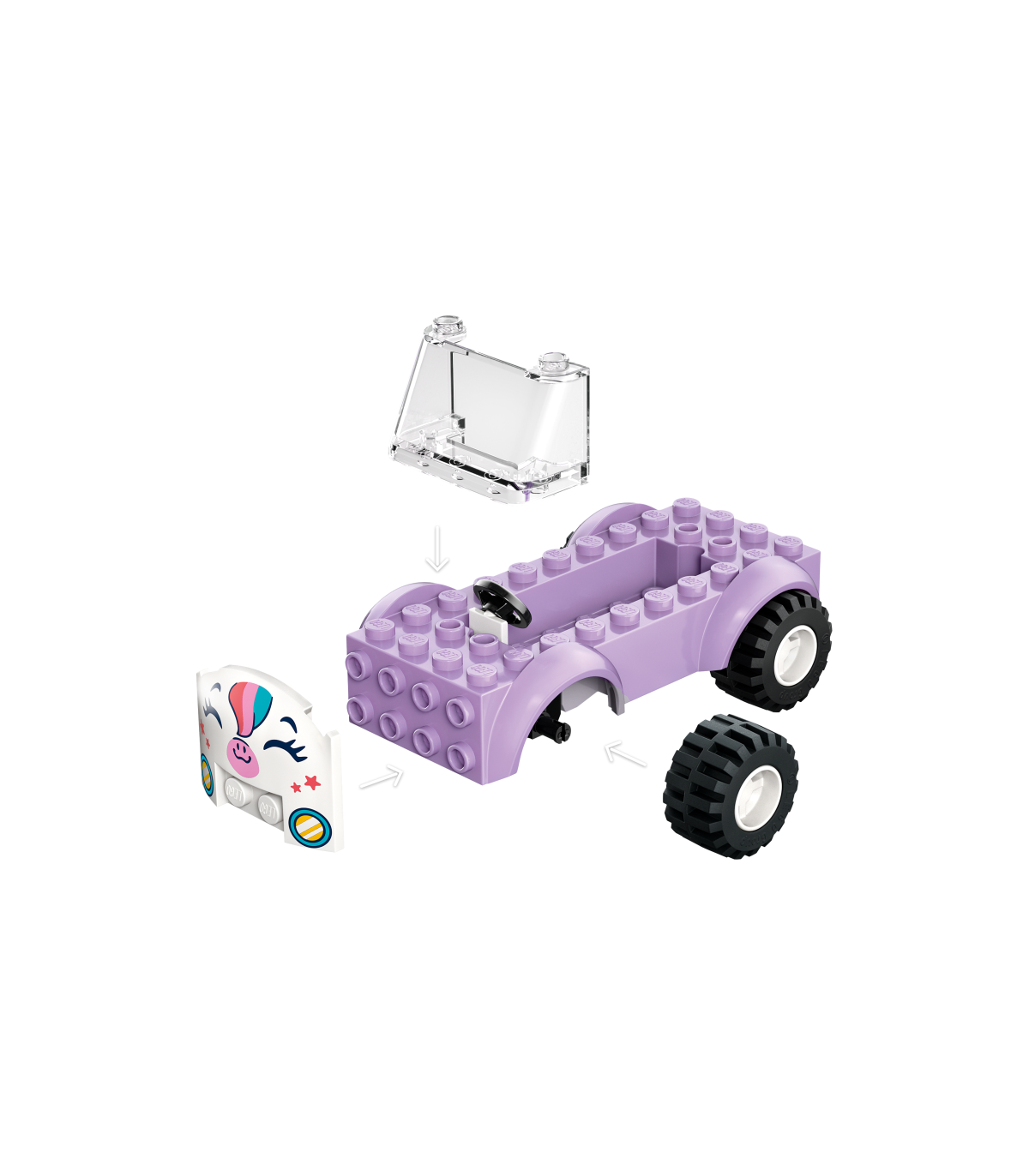 ÜKSSARVIKUAUTO MÄNGUKOMPLEKT – 4-aastased ja vanemad lapsed saavad lõbusalt õppida ehitama selle ükssarvikuteemalise mänguasjaga, mis sisaldab 2 mininukku ja tarvikuid, mis ergutavad väikeste kujutlusvõimet
