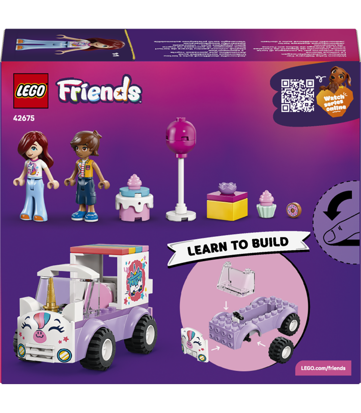 SÜNNIPÄEVA MÄNGUASJAD – LEGO® Friends Ükssarviku koogikullerauto 42675 avab eelkooliealistele terve hulga õppimistegevusi, nagu lugude jutustamine sünnipäevakingituse, koogimänguasja, õhupalli ja sõõrikuga