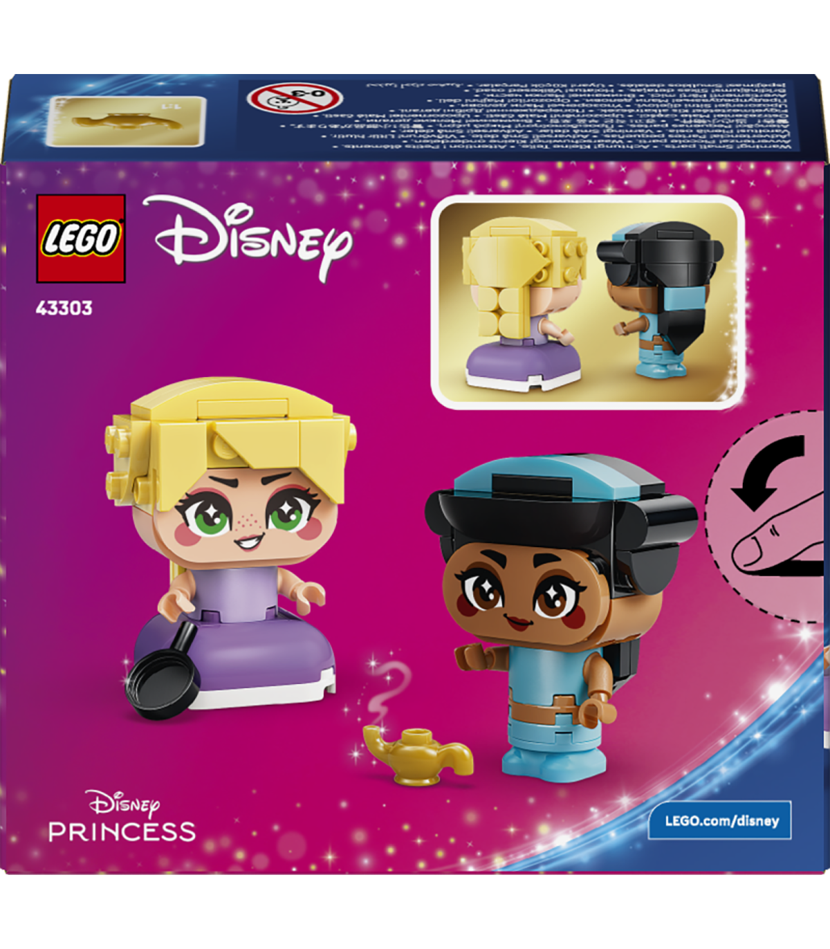 DISNEY tegelased Jasmine ja Rapuntsel – See Mini Jasmine ja Rapuntsli (43303) printsesside mängukomplekt sisaldab 2 LEGO® ǀ Disney Princess fantaasiafilmide tegelast, mis kuuluvad kogutavasse sarja