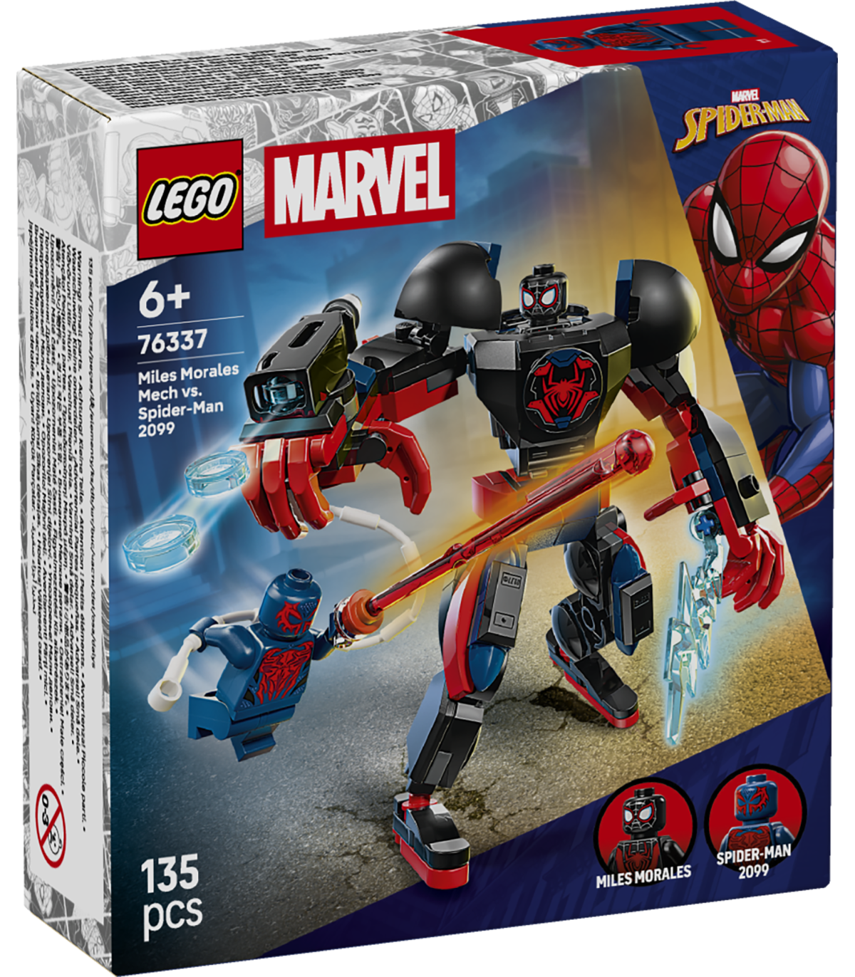 Spider-Mani kingiidee – kingi LEGO® ǀ Marvel Miles Moralesi robot vs. Spider-Man 2099 (76337) noortele superkangelastele, kellele meeldivad kokkupandavad robotimänguasjad, minifiguurid ja Spider-Mani kaup