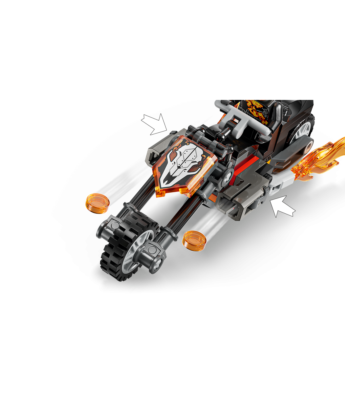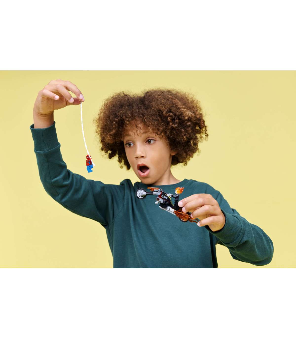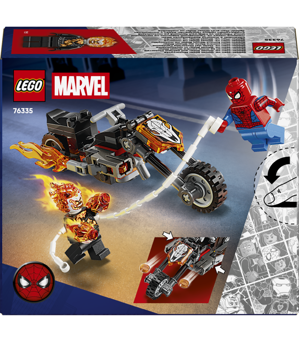 Taasloo eepiline lahingutegevus – lapsed saavad mängida kiiret tagaajamist, kui Spider-Man heidab oma võrguköie Ghost Rideri mootorrattale; kurikaela kätest ja mootortatta summutist väljuvad leegid