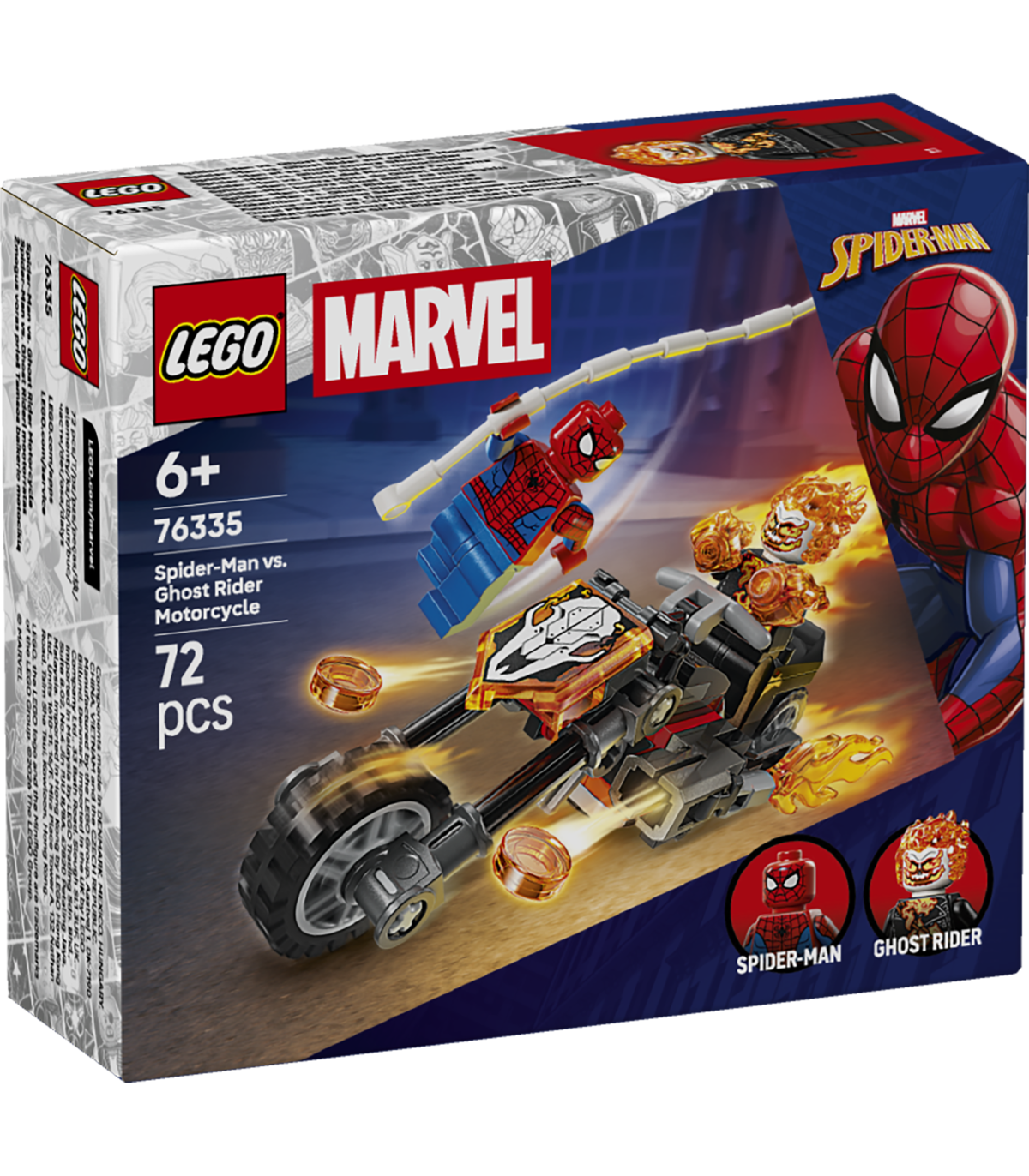 Spider-Mani mootorratta ehitusmänguasi – söösta superkangelaste lahingusse LEGO® ǀ Marveli Spider-Man vs. Ghost Rideri mootorratta (76335) ehituskomplektiga 6-aastastele ja vanematele poistele, tüdrukutele ja lastele