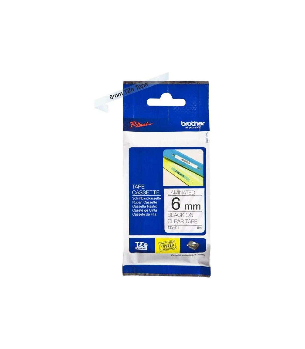 Brother | TZe-111 Laminated Tape | Black on Clear | TZ | 8 m | 6 cm