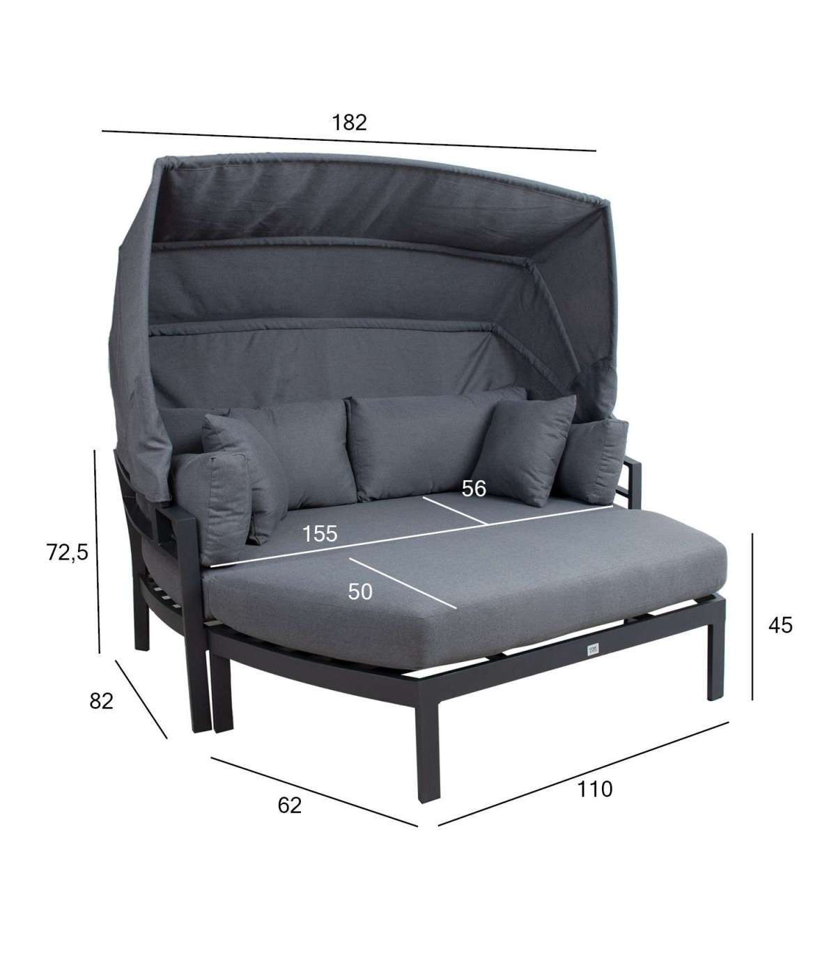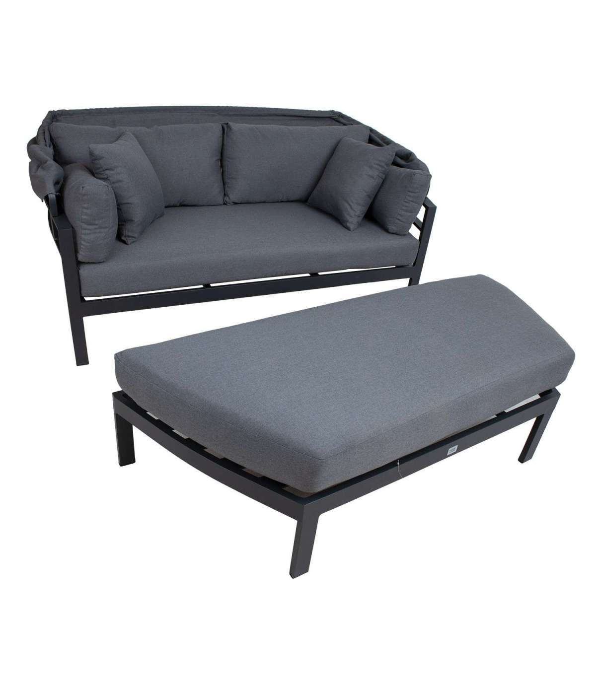 Диван ТОMSON - удобное и многофункциональное решение для приятного отдыха. Пуфик можно разместить по-разному, чтобы создать просторную зону для отдыха или дополнительное место для большой группы. Изменение положения навеса позволяет наслаждаться солнцем или тенью именно так, как вам хочется. Прочная основная конструкция дивана и пуфика изготовлена ??из алюминия и окрашена порошковой краской темно-серого цвета. В комплект входят мягкие и толстые подушки сиденья, 4 подушки для спины и 2 подушки. Чехлы на подушки изготовлены из атмосферостойкой олефиновой ткани. Размеры дивана 182x82xH72,5см. Размеры пуфика 156x60xH28,5см. Продукт очень устойчив к изменяющимся погодным условиям и очень прост в уходе. Только подушки и балдахин нуждаются в защите от непогоды. Коробка для подушек - хорошее решение для повседневного хранения и сохранения подушек сухими. Чтобы продлить срок службы уличной мебели, мы рекомендуем использовать чехлы для уличной мебели. ХРАНЕНИЕ: в конце летнего сезона рекомендуем хранить садовую мебель в помещении. Очистите и высушите мебель перед хранением. Используйте для хранения прохладное, сухое, хорошо проветриваемое помещение.