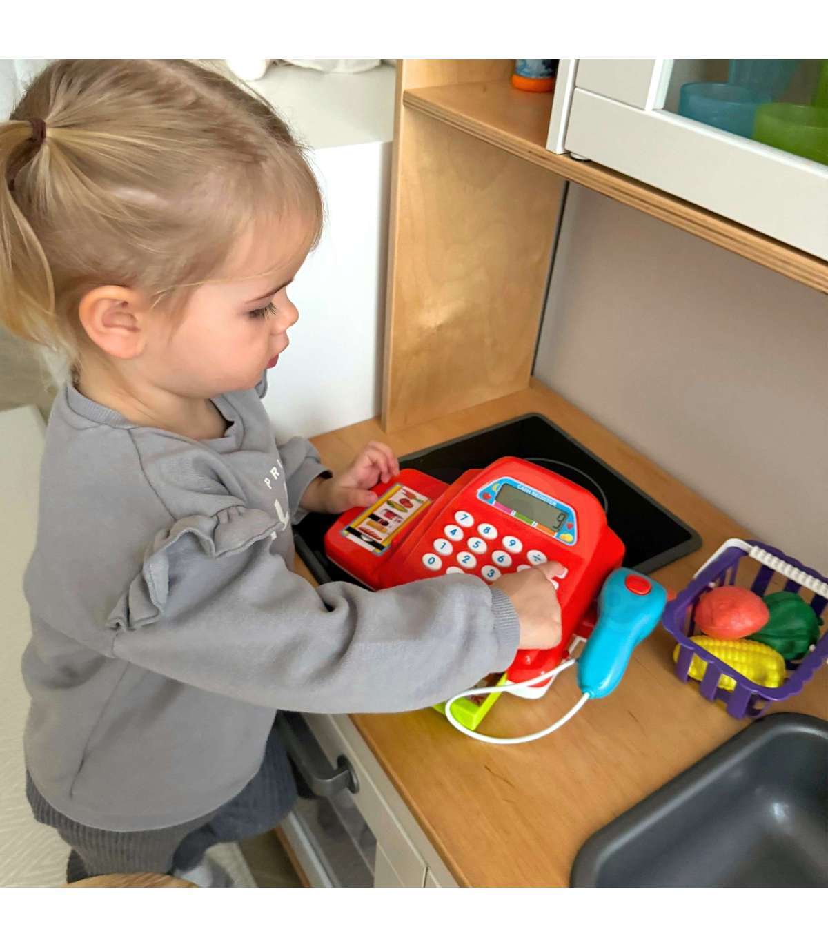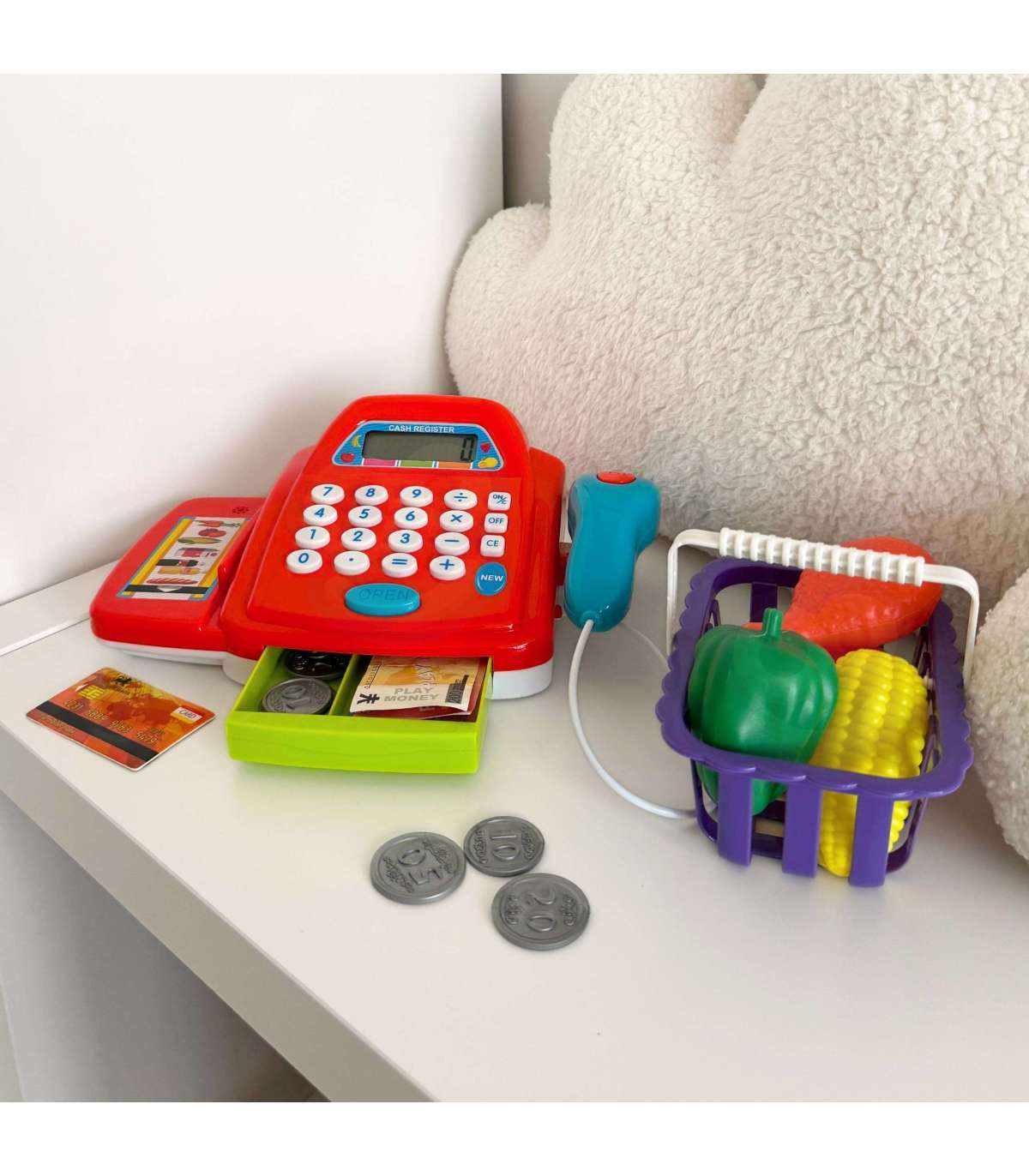 Набор кассы магазина WOOPIE с аксессуарами — отличное предложение для детей, которые любят ролевые игры. Эта интерактивная обучающая игрушка сочетает обучение с развлечением, знакомя самых маленьких с миром покупок, счета и работы с кассовым аппаратом. Благодаря реалистичным функциям и богатому набору дополнений ребёнок может почувствовать себя и продавцом, и покупателем. Дети могут выбрать товары, которые хотят купить, упаковать их в корзину, а затем пробить на кассе с помощью сканера. Затем покупатель может расплатиться монетами или платежной картой. Игрушка идеально подходит для игры в большой компании с распределением ролей.