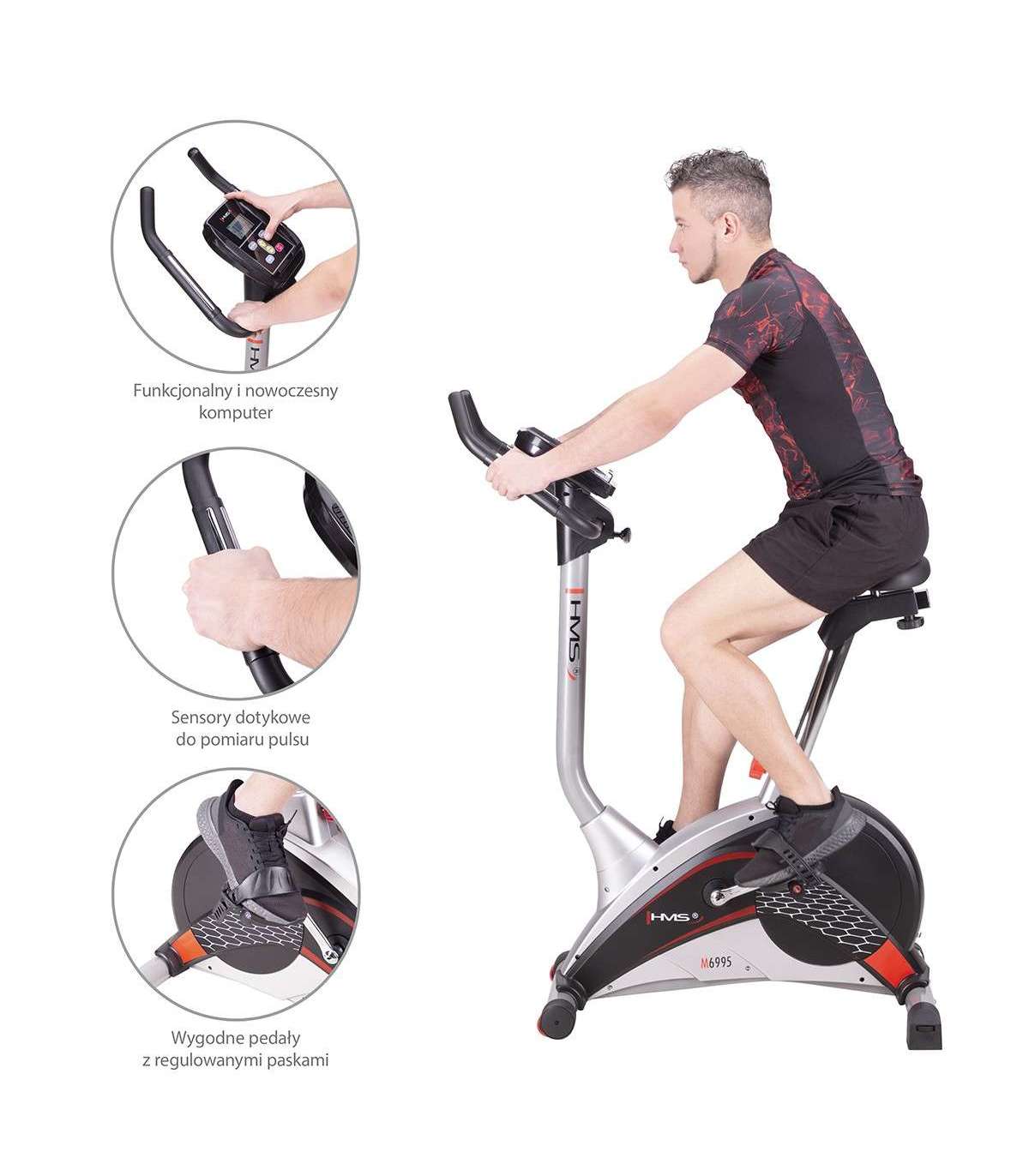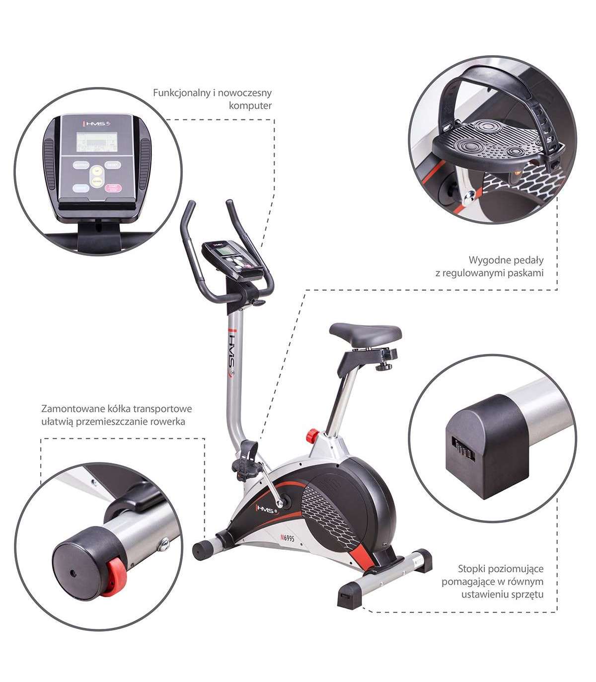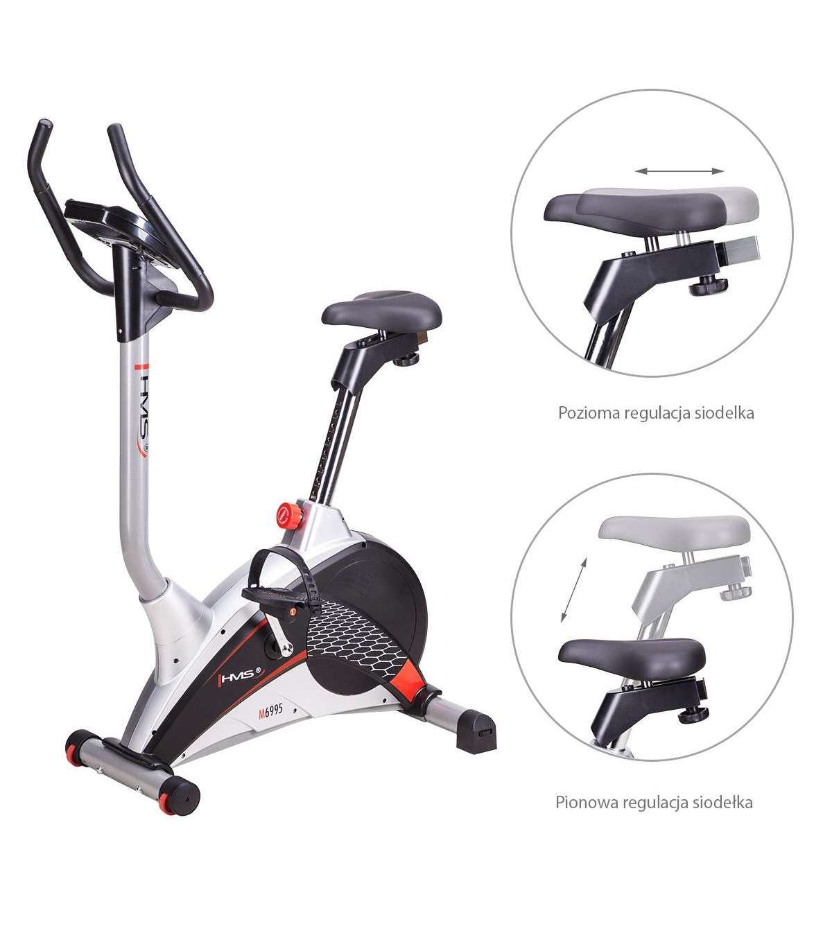 M6995 — прочная и устойчивая конструкция. Выравнивающие опоры помогают установить оборудование ровно, а заводские транспортировочные ролики облегчают его перемещение. Регулируемое седло и удобные педали с регулируемыми ремнями — ещё одно преимущество этого удачного продукта. M6995 HMS PREMIUM — универсальный велосипед. Благодаря небольшим габаритам и малому весу он не требует много места.