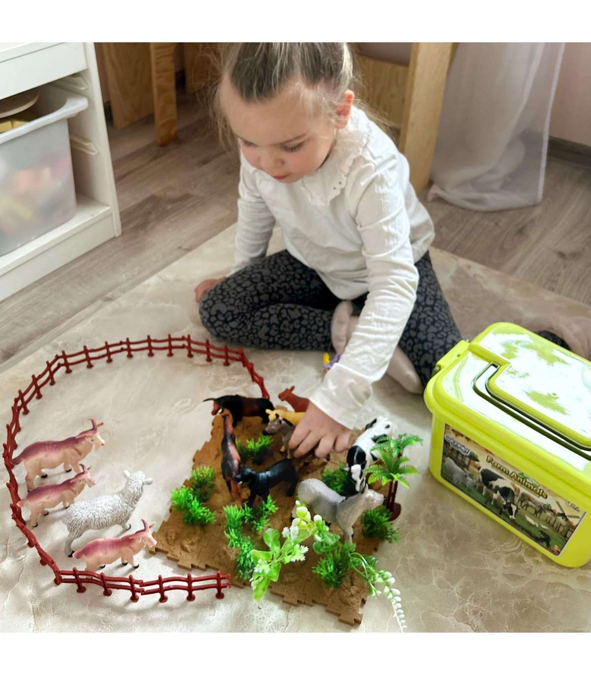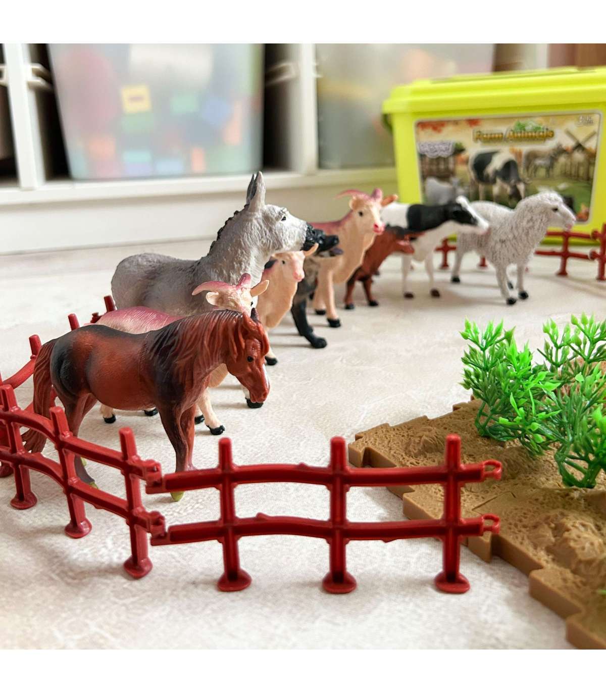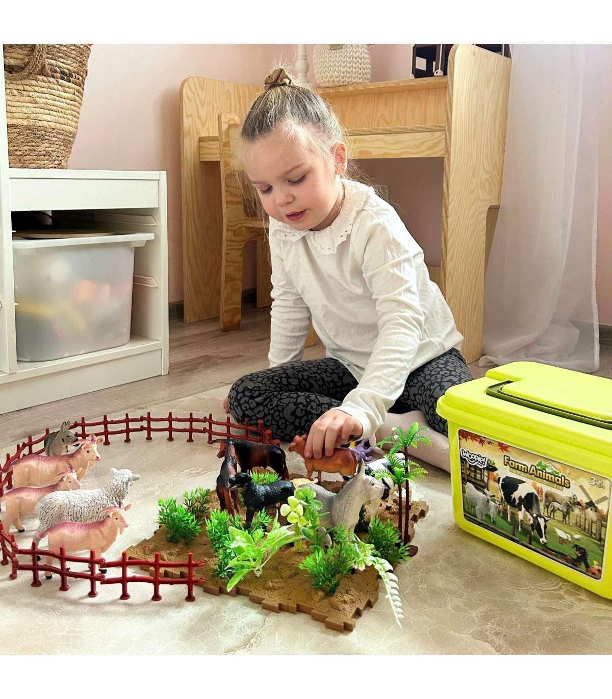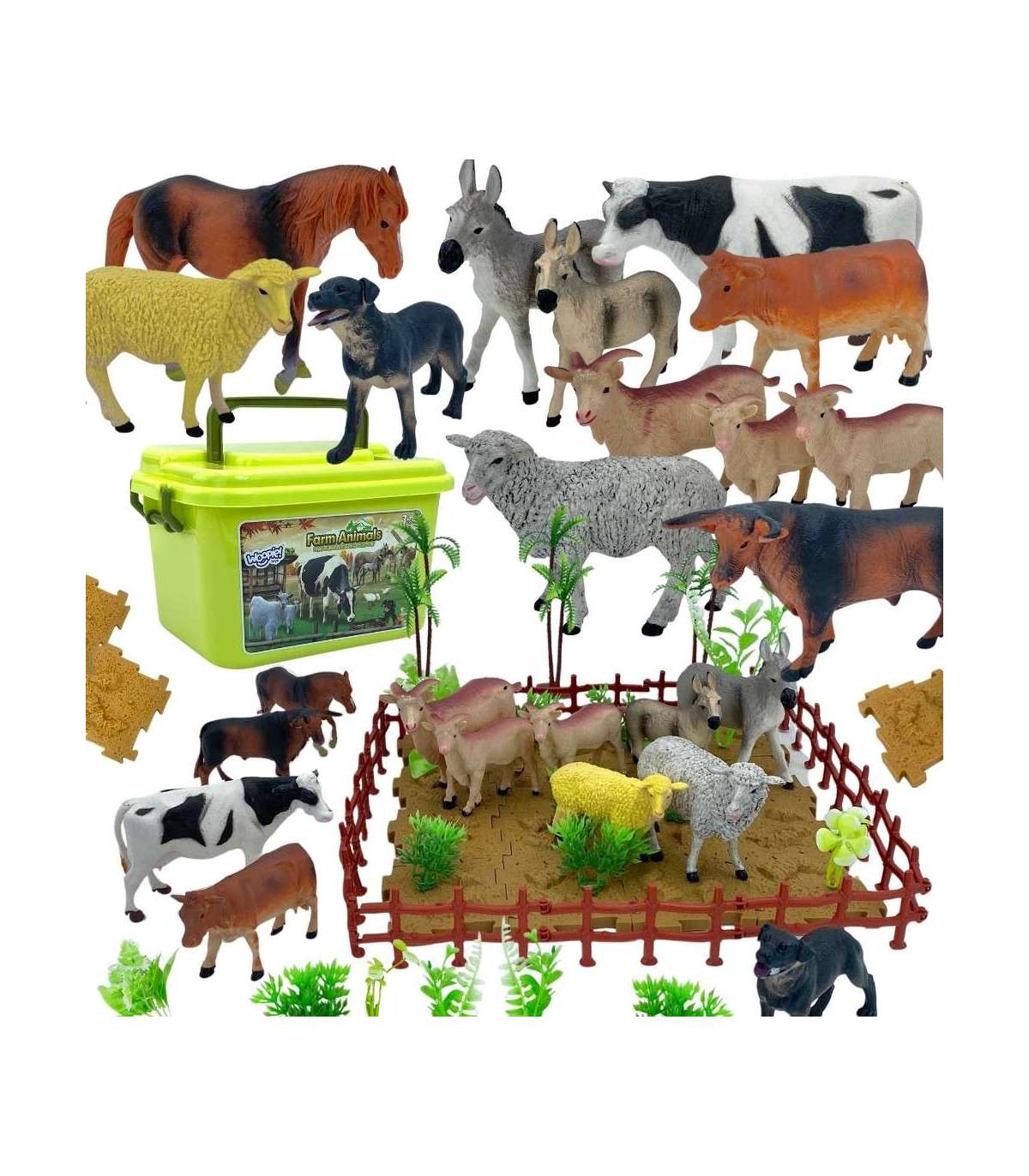 Набор фигурок Ферма от бренда WOOPIE — отличная идея для подарка маленьким любителям мира животных. В наборе 12 разнообразных, реалистично выполненных фигурок животных, 44 аксессуара и чемоданчик. Набор прекрасно подходит для обучения через игру. Дети смогут научиться распознавать виды животных и называть их. Набор оснащён практичным чемоданчиком с удобной ручкой, который позволяет не только быстро убрать игрушки, но и взять набор в поездку. Реалистично выглядящие фигурки пополнят коллекцию маленького коллекционера, выполнят образовательную функцию и обеспечат хорошее развлечение, благодаря которому малыш расширит границы своего воображения и креативности.