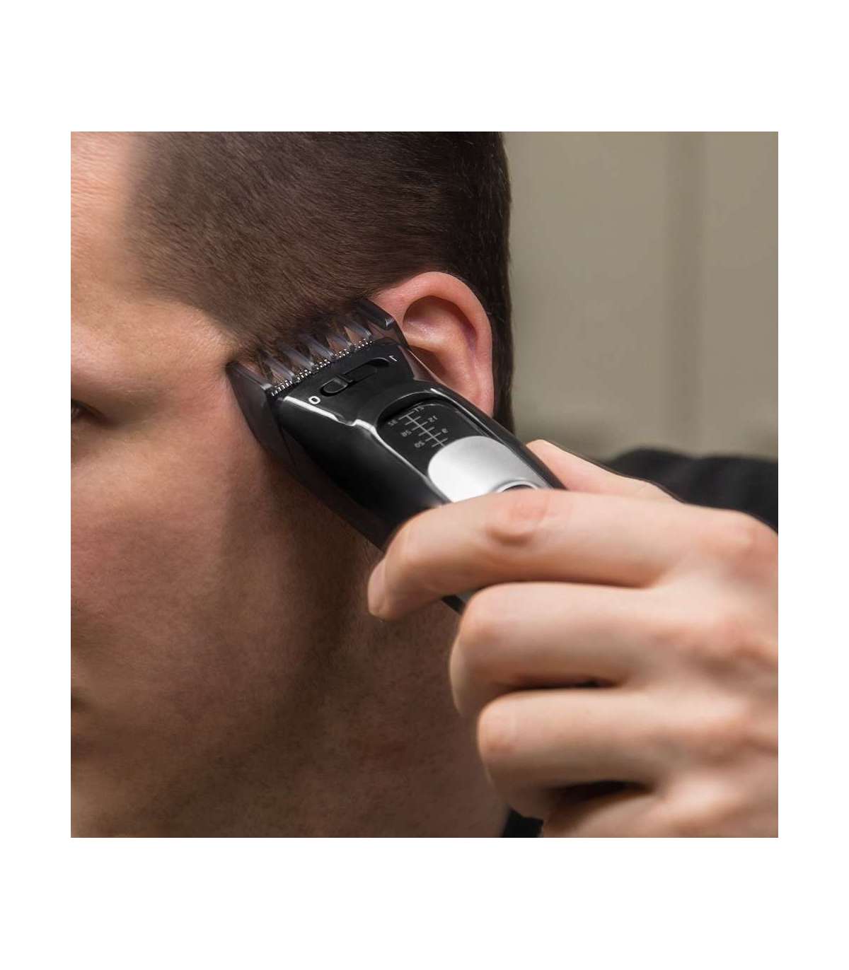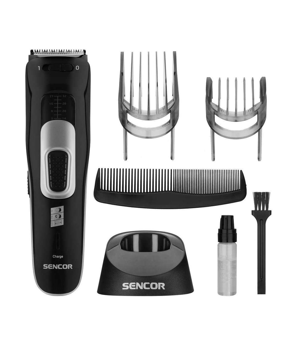Supplied accessories: practical stand, charger / power adapter, 2 comb attachments, cleaning brush, oil for the clipper unit