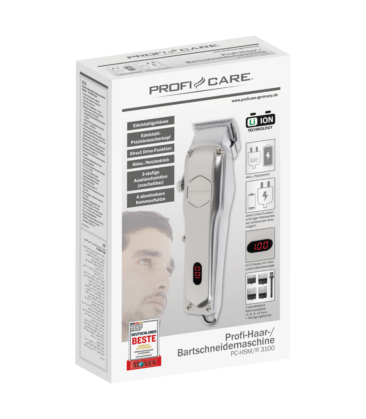 Professional hair and beard trimmer ProfiCare, stainless steel