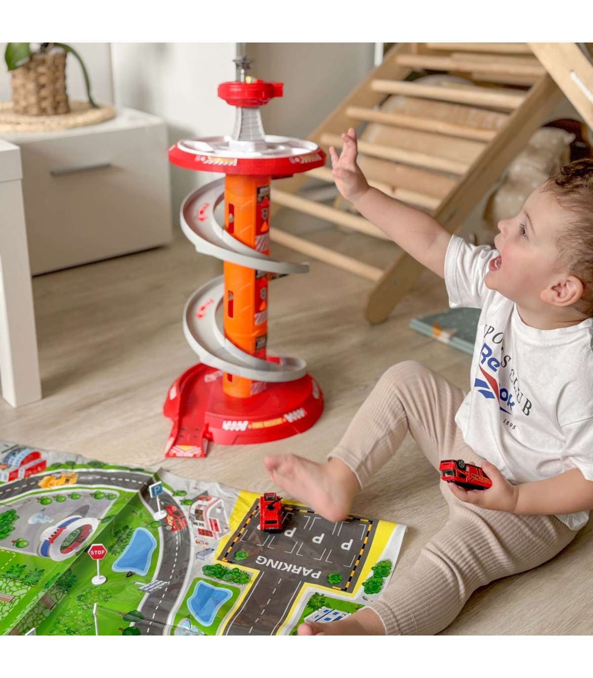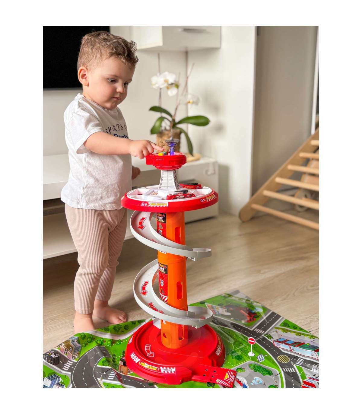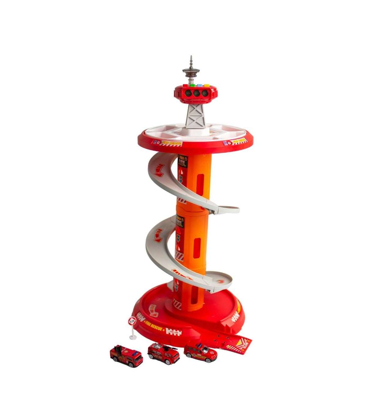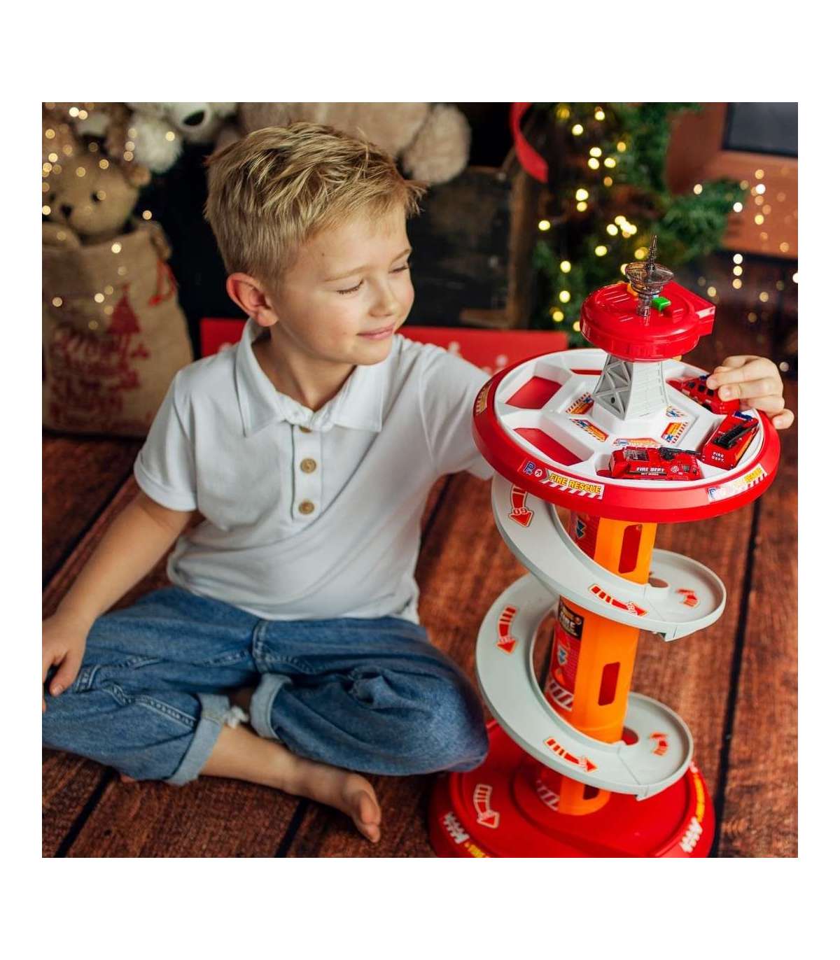Потрясающая многоуровневая вращающаяся парковка-гараж для пожарной службы от компании Woopie обязательно понравится ребёнку. Эта игрушка разбудит воображение каждого фаната форменных служб, которая после выезда с парковки выходит на включённую в набор дорогу. Быстрое спускание автомобилей с отдельных уровней возможно благодаря специальному извилистому съезду. Кроме того, в комплекте находятся 3 разных автомобиля пожарной службы.