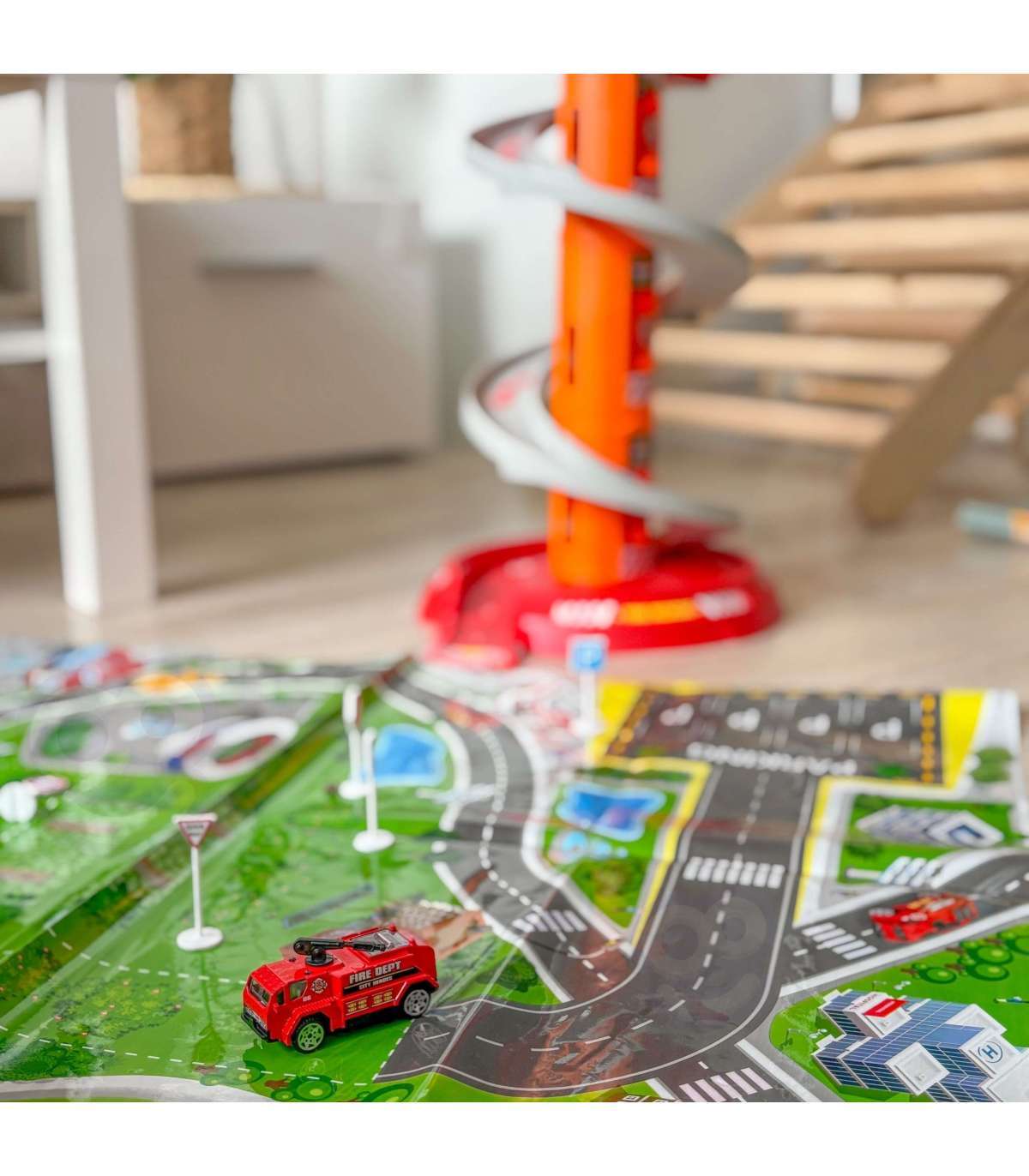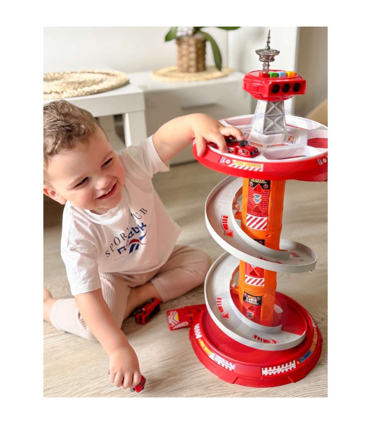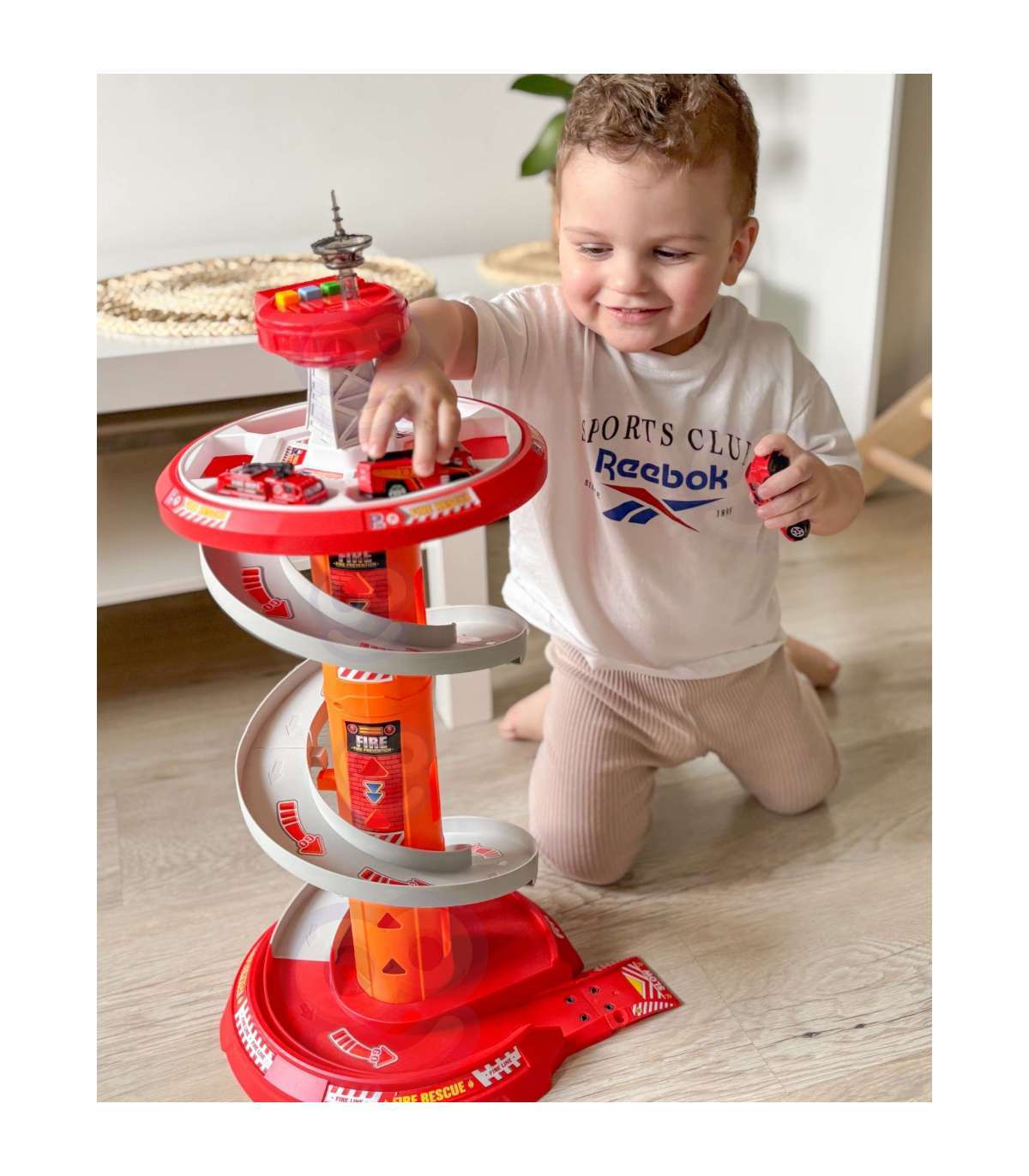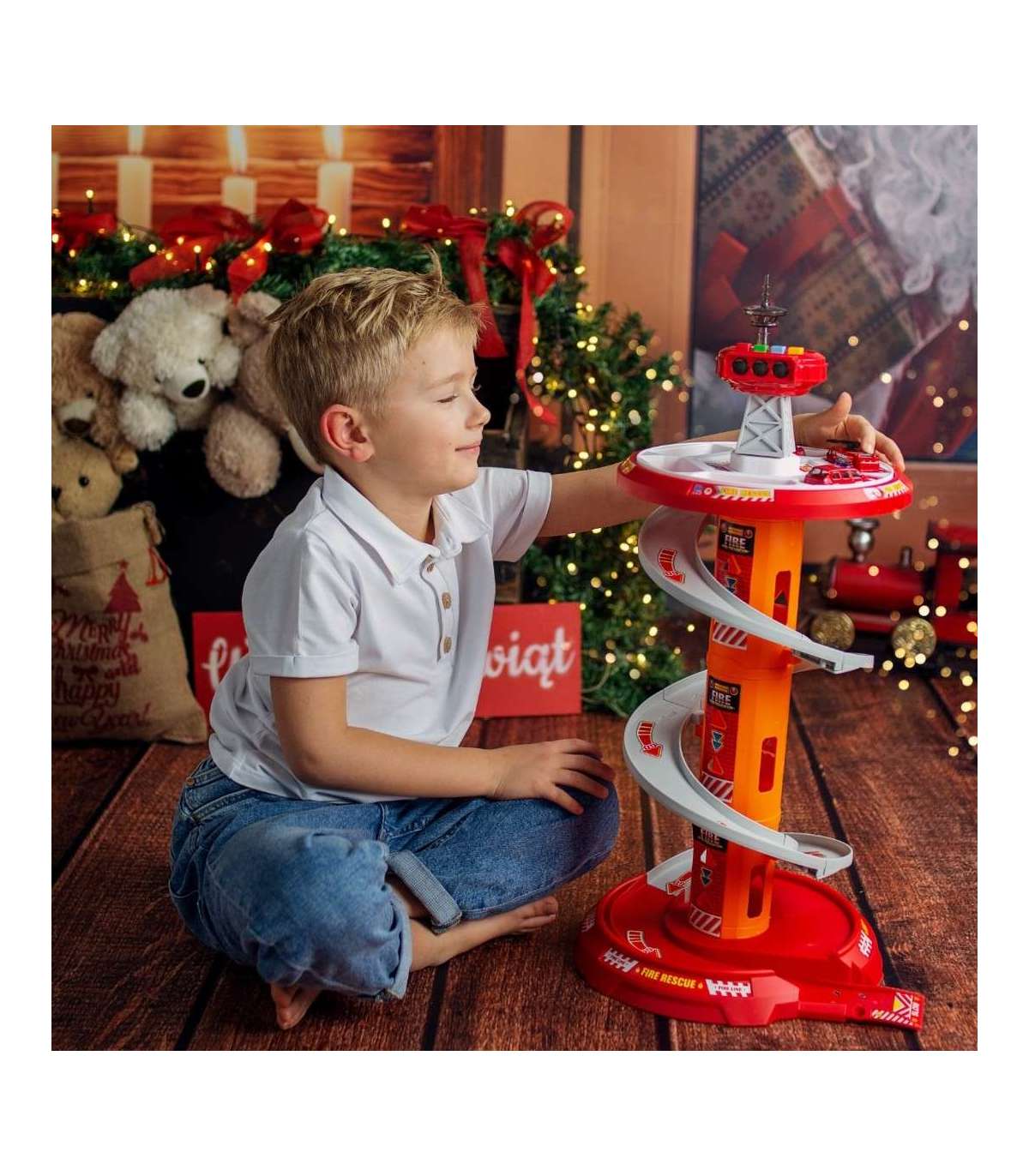 Потрясающая многоуровневая вращающаяся парковка-гараж для пожарной службы от компании Woopie обязательно понравится ребёнку. Эта игрушка разбудит воображение каждого фаната форменных служб, которая после выезда с парковки выходит на включённую в набор дорогу. Быстрое спускание автомобилей с отдельных уровней возможно благодаря специальному извилистому съезду. Кроме того, в комплекте находятся 3 разных автомобиля пожарной службы.
