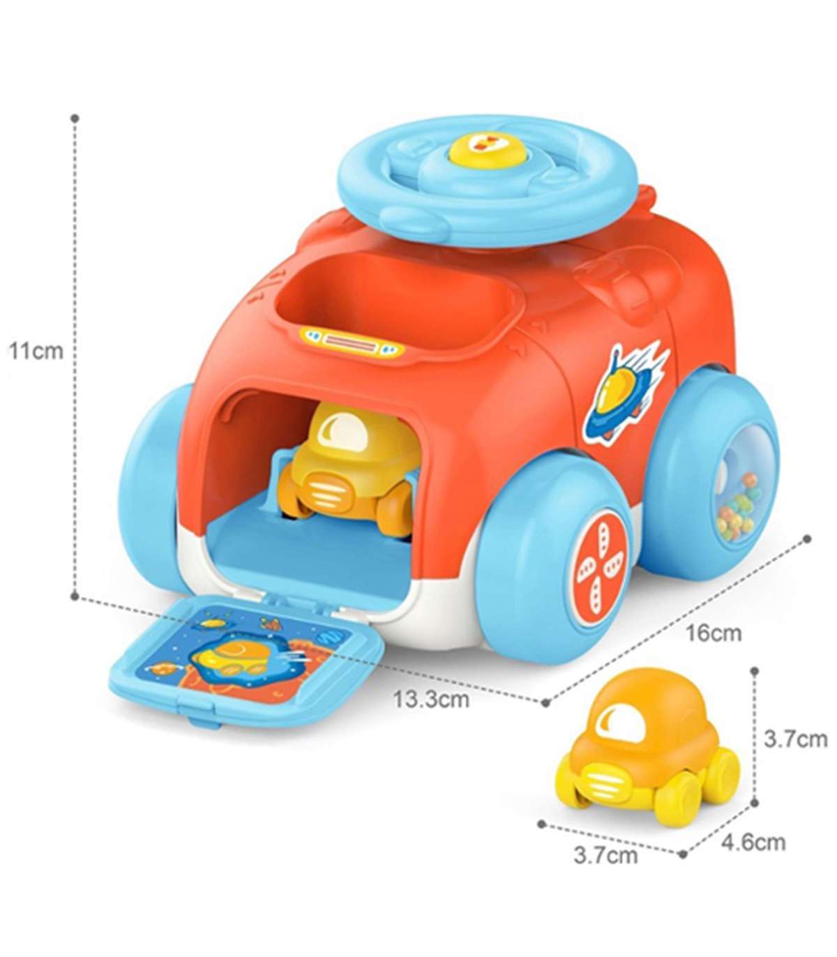 Автомобиль с пусковым устройством от бренда WOOPIE — отличная идея для детей. Внутри автомобиля находятся 2 меньших транспортных средства на колесах. В комплекте есть пусковое устройство, которое позволяет ещё больше разнообразить игру. Поместите машинку в катапульту, поверните руль и нажмите клаксон — и ваша машинка выскочит из автомобиля! Автомобиль также имеет сенсорные элементы, такие как звуки от колес при их вращении. Отличный вариант игры с друзьями или в одиночку.