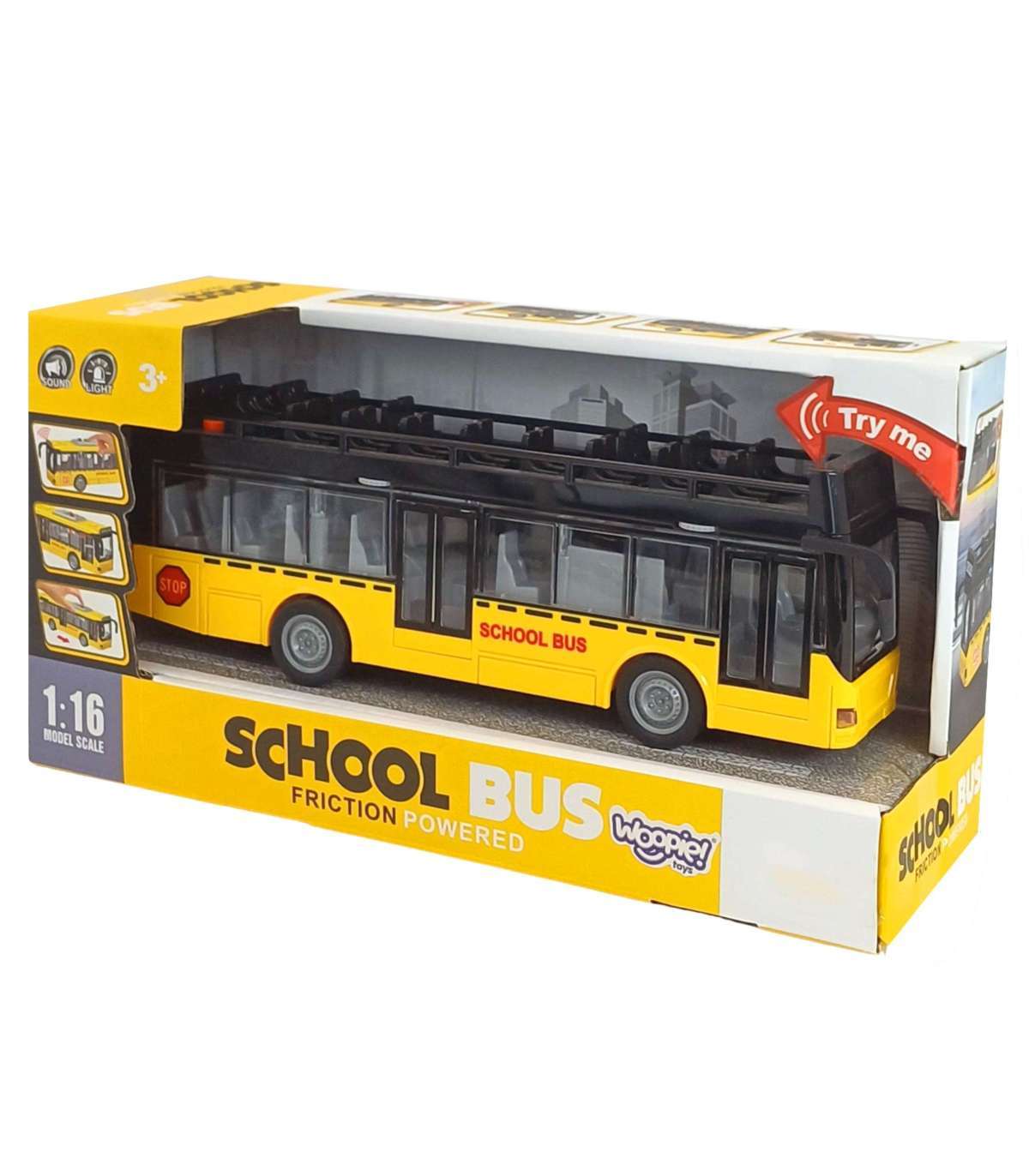 Автобус со светом и открывающимися дверями бренда WOOPIE с одной стороны имеет две пары открывающихся дверей. Дополнительно транспортное средство оснащено friction-приводом: достаточно толкнуть его вперёд, и оно поедет само. Игрушка издаёт звуки и внутри транспортного средства загорается синий свет. Идеально подходит для ребёнка, который любит играть с разными транспортными средствами.