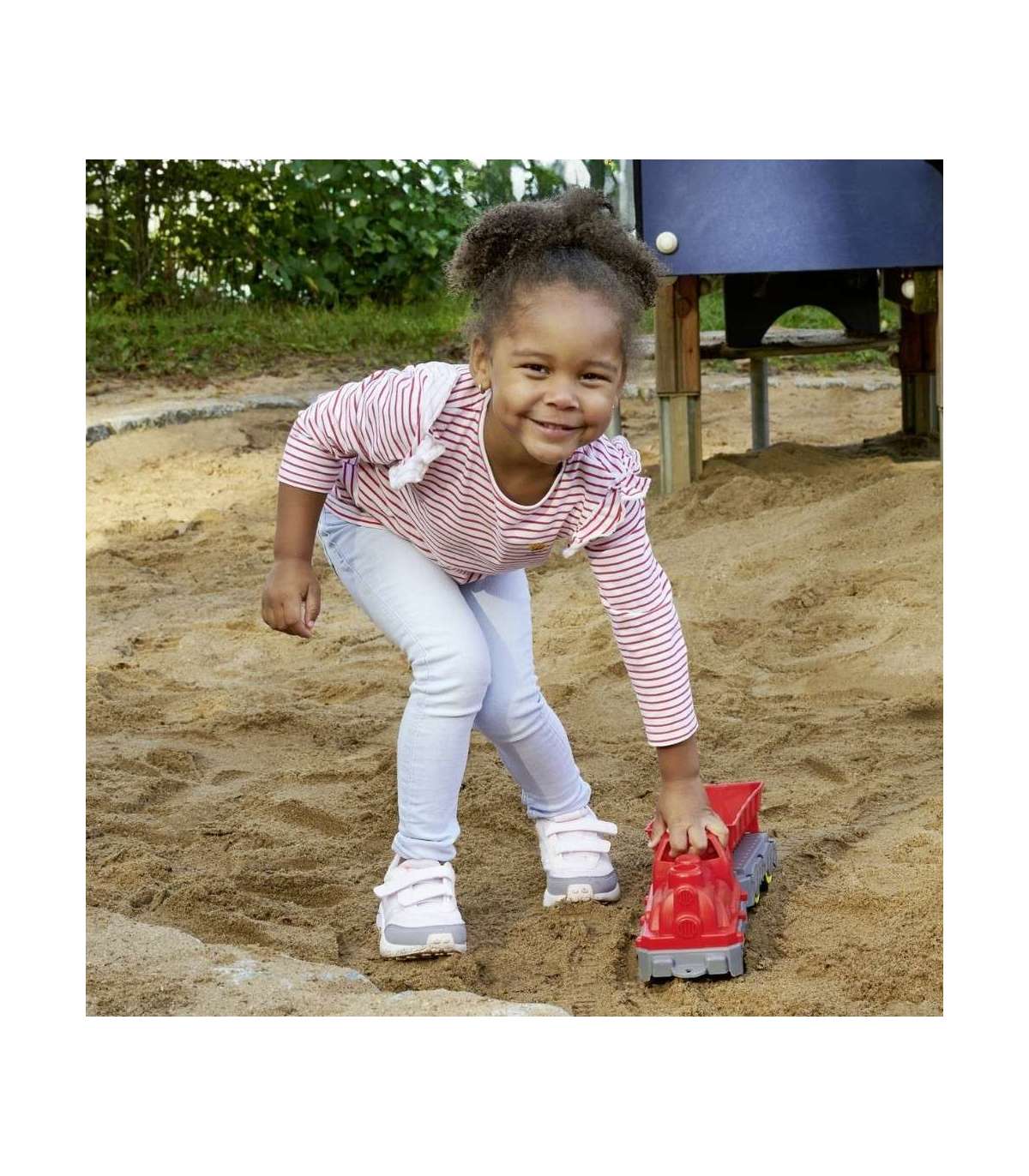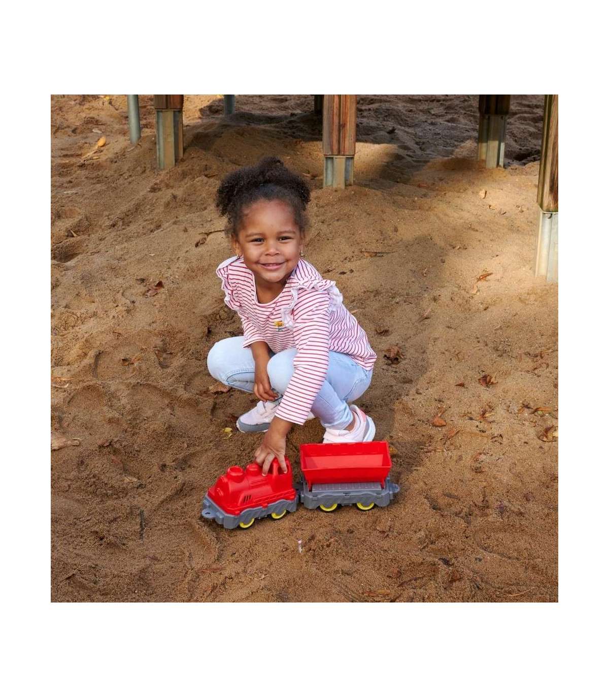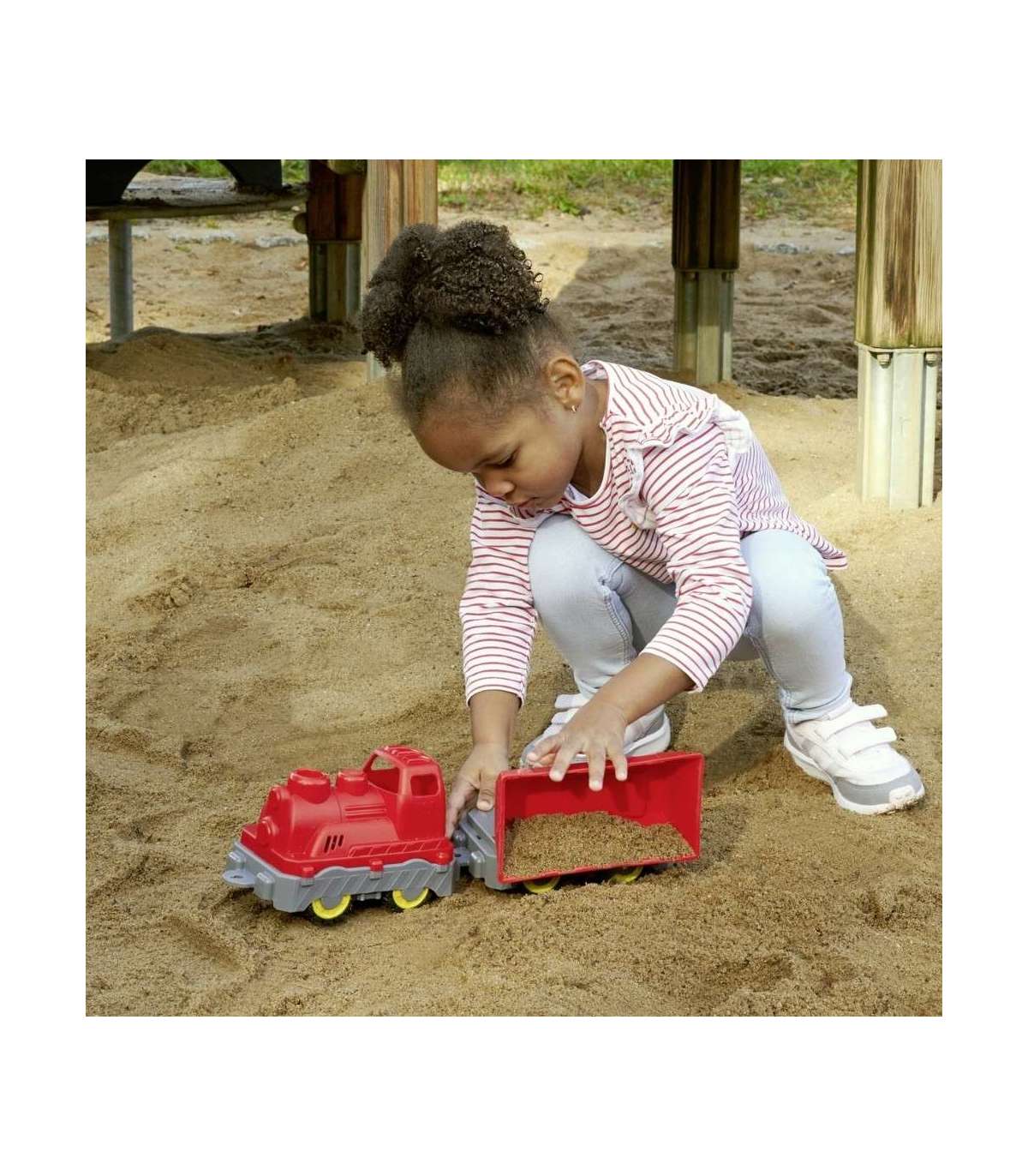 - Идеален для песочницы — Устойчивость к УФ-лучам и простота в очистке делают поезд отличным вариантом для использования на свежем воздухе.