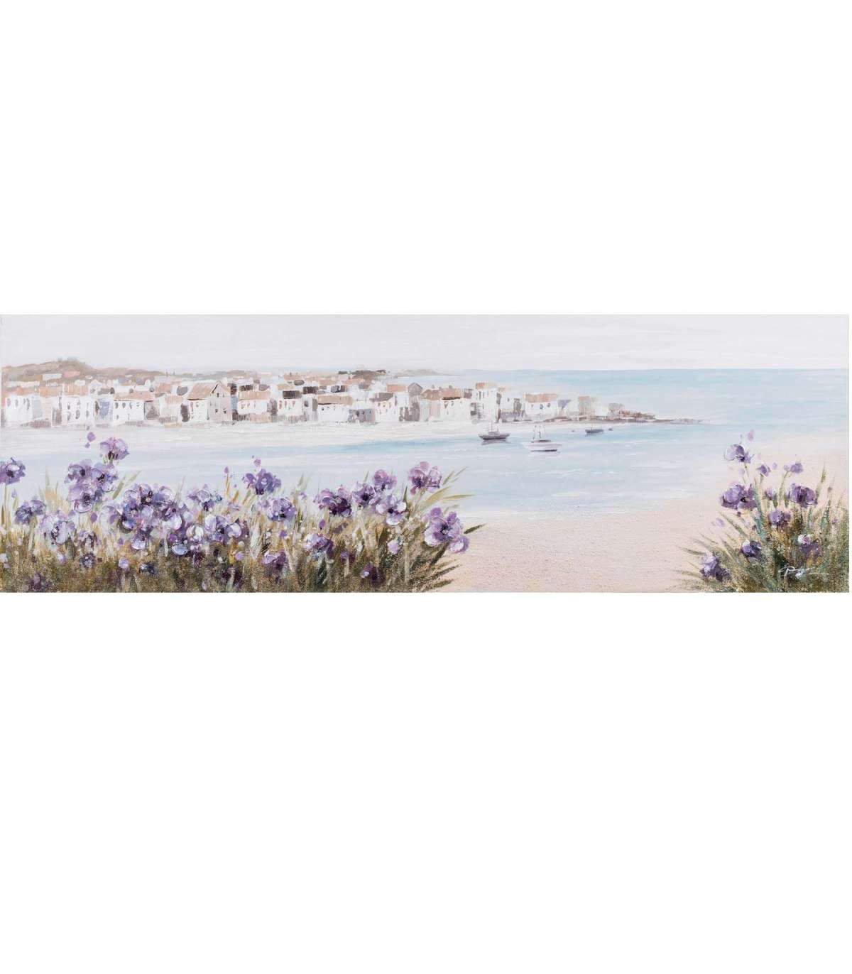Масляная картина 50x150см, пляж / фиолетовые цветы