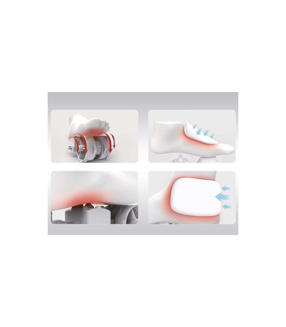 See jalamassaažiseade on ergonoomiliselt disainitud maksimaalse mugavuse tagamiseks, pakkudes sügavat Shiatsu massaaži soojendava efekti ja õhukompressiooniga. See parandab vereringet, vaigistab planta fastsiidi põhjustatud valu ja aitab vähendada jalgade neuropaatilist tuimust. Massaaži ja õhu kokkusurumise intensiivsus on reguleeritav 3 tasemel ja saadaval on 2 kuumuse taset, et luua ainulaadne ja kohandatud massaažiprogramm. Eemaldatavad ja pestavad jalavarrukad. Komplektis kaugjuhtimispult ja automaatne väljalülitus pärast 15-minutilist kasutamist.