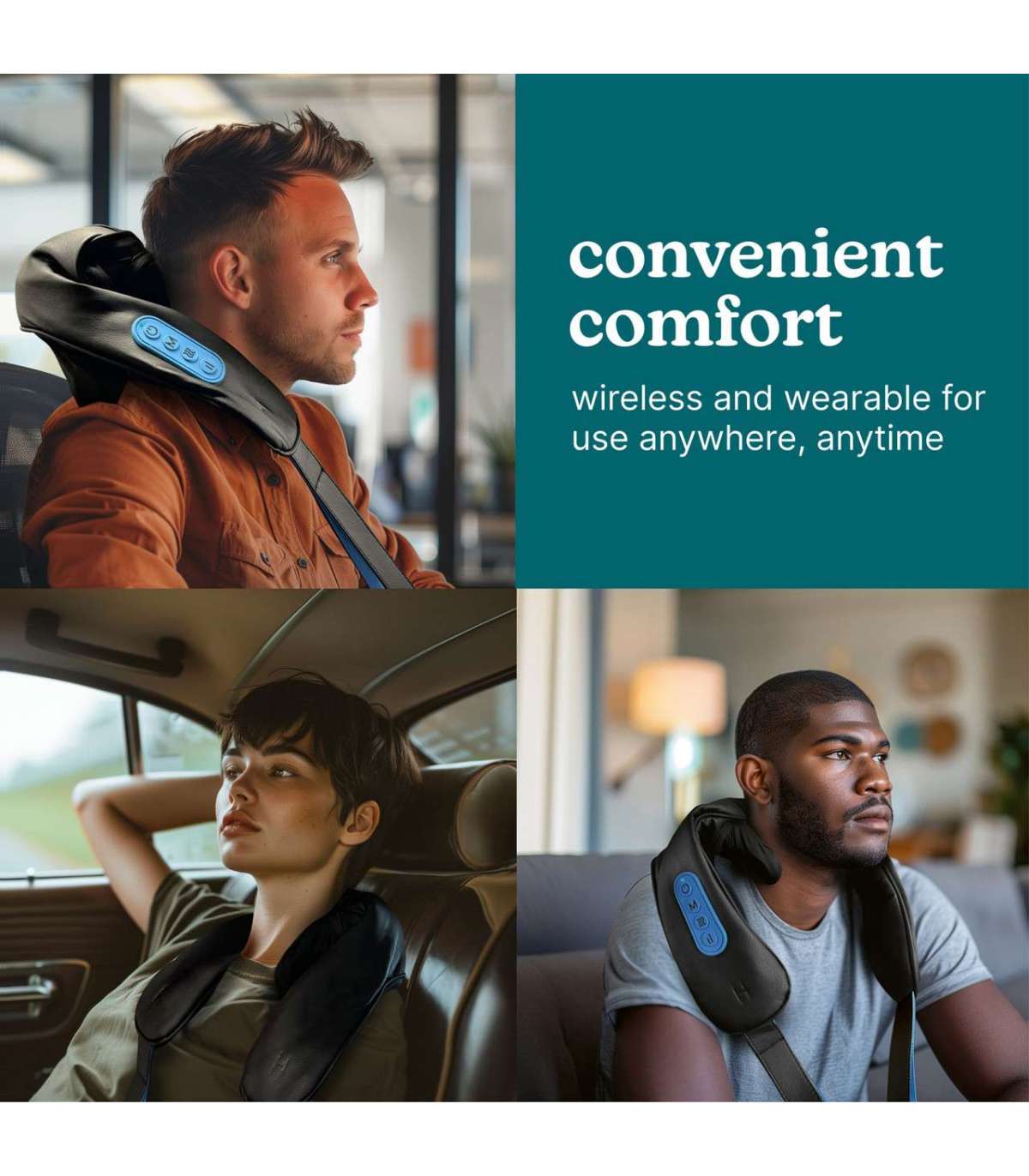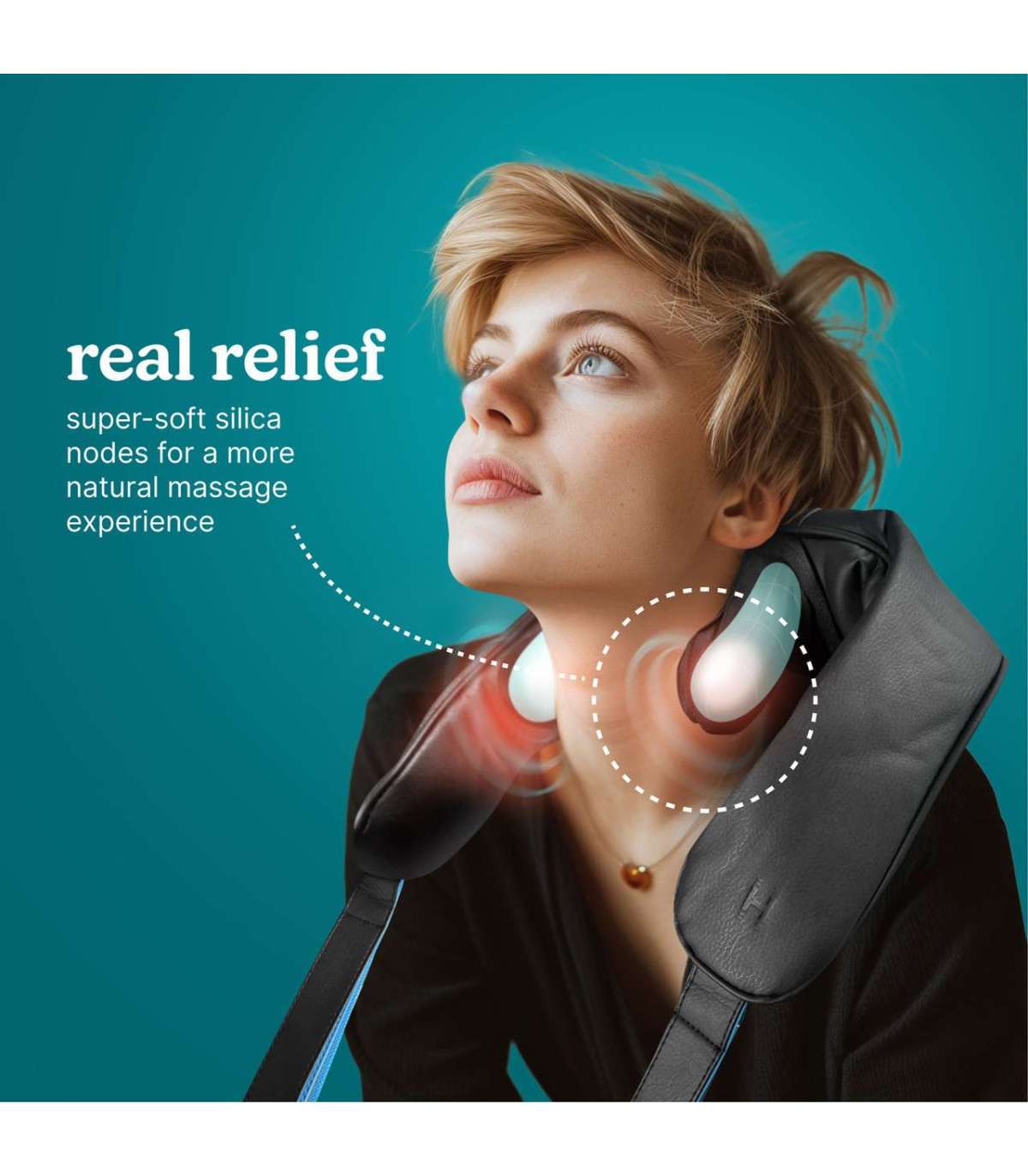 2 lõõgastavat kaela- ja õlamassaaži programmi, 2 intensiivsuse seadistust ja 1 rahustav soojusfunktsioon