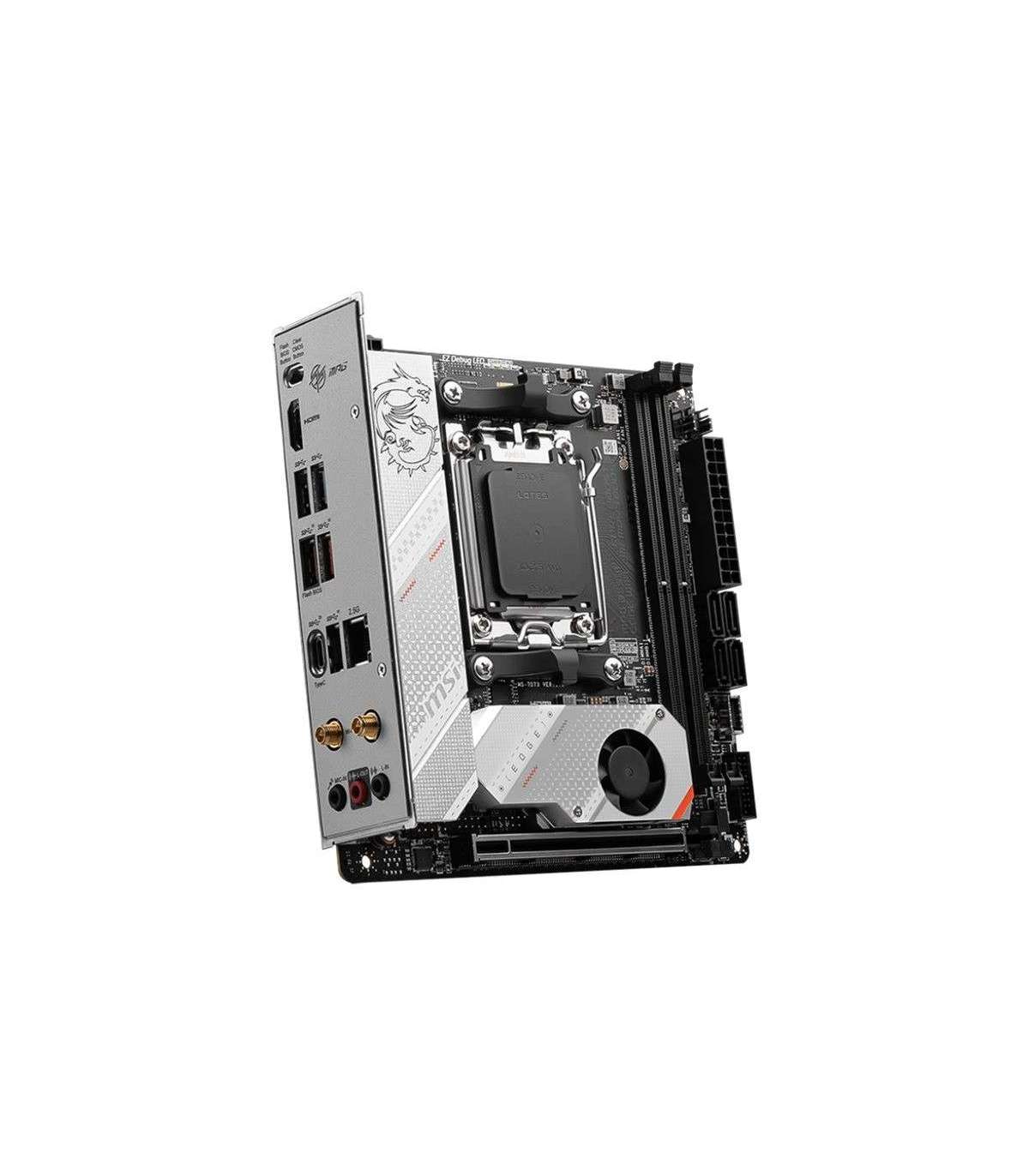 MSI | MPG B650I EDGE WIFI | Processor family AMD | Processor socket AM5 | DDR5 DIMM | Memory slots 2 | Supported hard disk drive interfaces SATA, M.2 | Number of SATA connectors 4 | Chipset AMD B650 | Mini-ITX