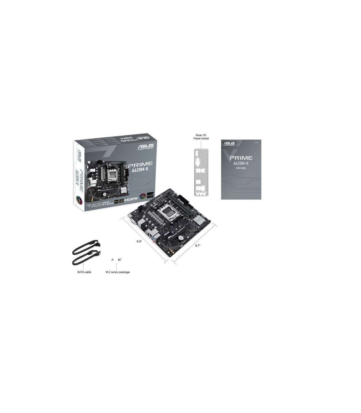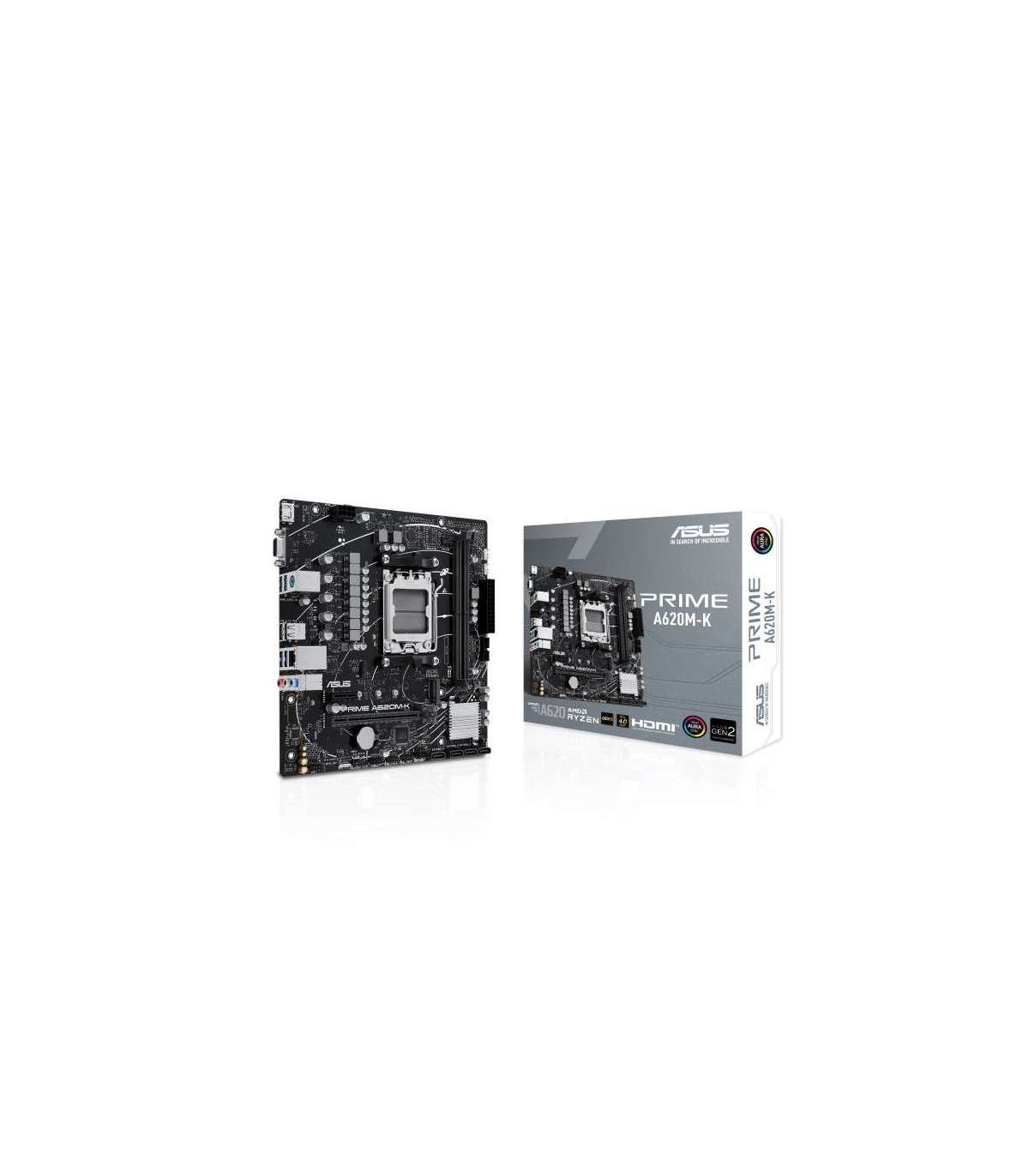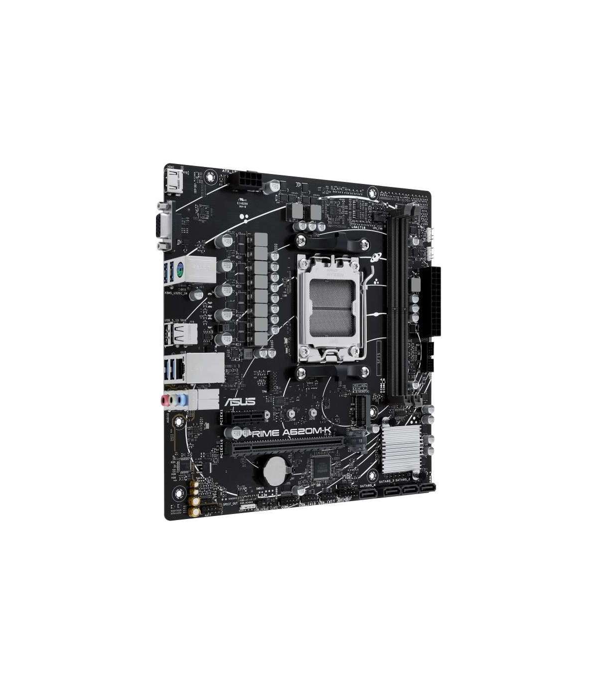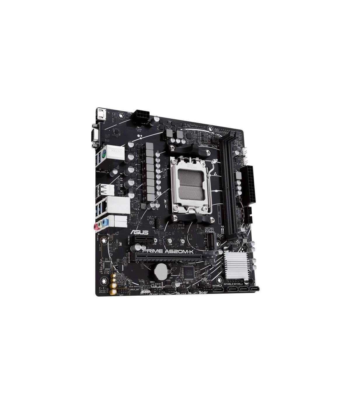 Asus | PRIME A620M-K | Processor family AMD | Processor socket AM5 | DDR5 DIMM | Memory slots 2 | Supported hard disk drive interfaces SATA, M.2 | Number of SATA connectors 4 | Chipset AMD A620 | micro-ATX