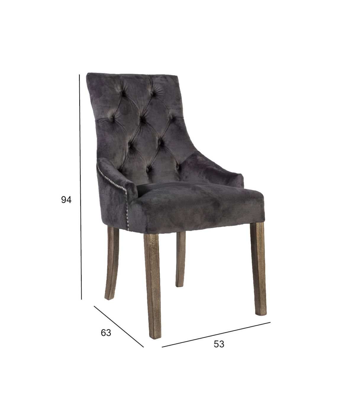 Стул HOLMES VELVET 53x63xH94cм, материал: бархат, цвет: тёмно-серый, деревянные ножки