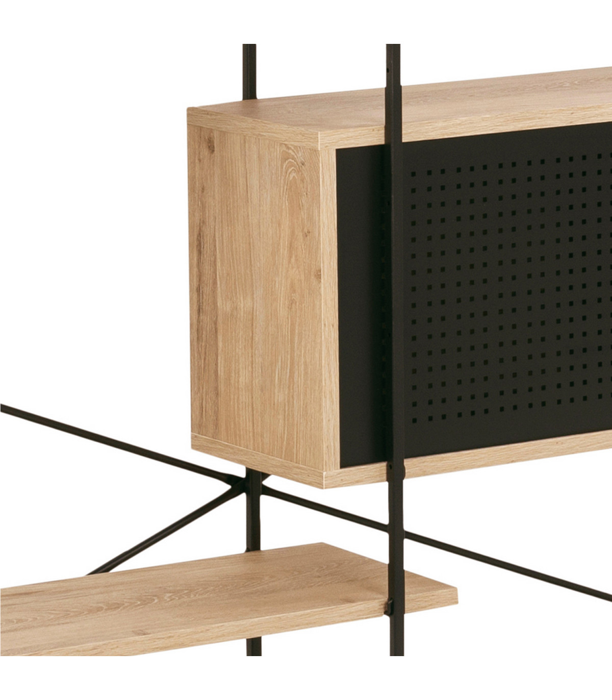 Книжный шкаф АНГУС 3/5-ne, 172x27xH188см. 3 и 5 полок, шкаф с металлической дверцей сеткой черного цвета. Полки: ламинированный ДСП, цвет: дикий дуб 3, каркас: металл, цвет: черный матовый.