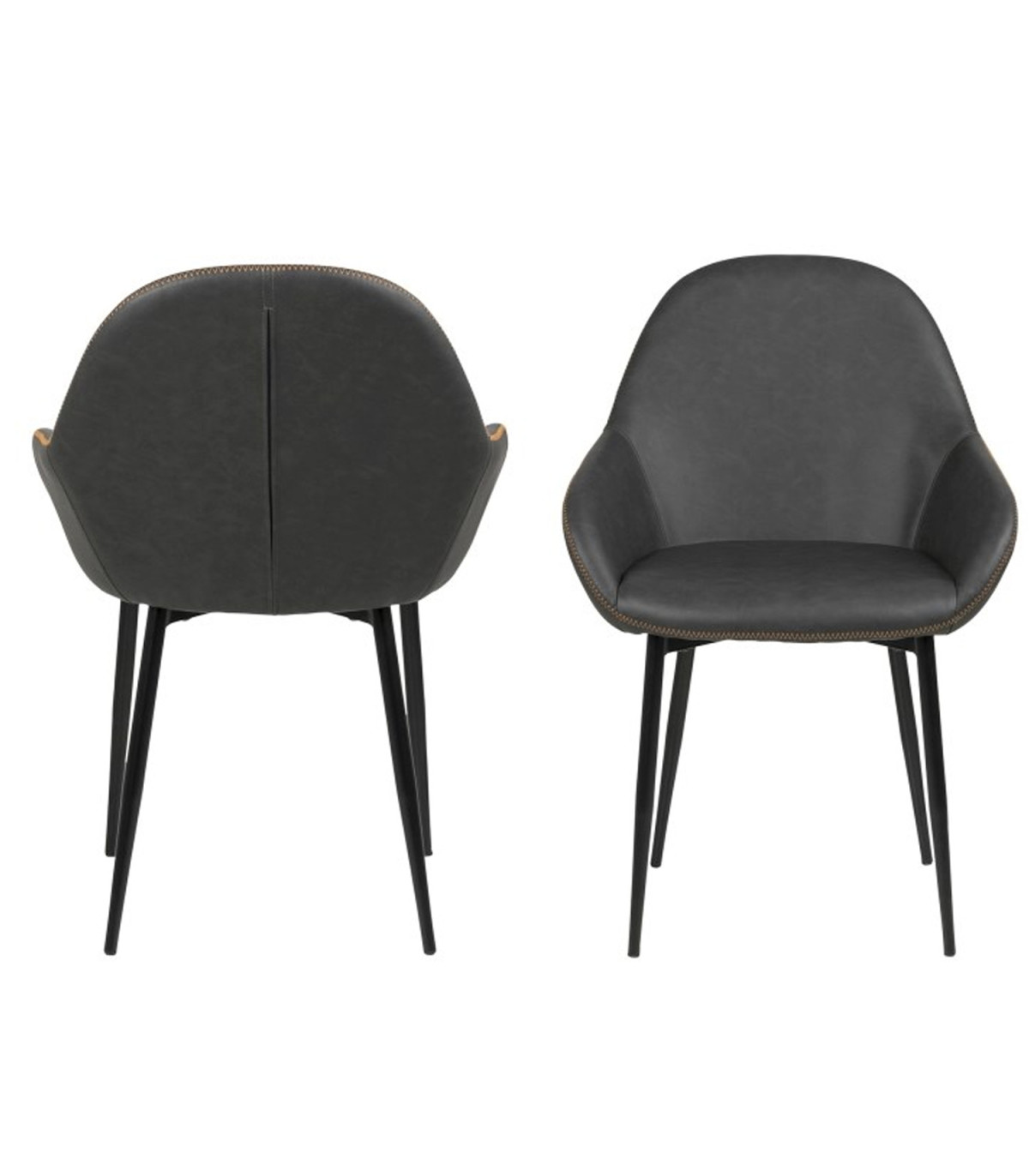 Tool CANDIS 60x57,5xH85cm. Moodne söögitool pakub mugavate käetugedega mõnusat istet. Sellel on õmblusdetailid, mis täiustavad söögitooli üldist orgaanilist joont. Pulbervärvitud viimistlusega must metallist alus sobib hästi istmega ja hoiab tooli stabiilsena. Iste ja seljatugi: kunstnahk, värvus: hall, oranžid õmblused, jalad: metall, värvus: must. Kaalupiirang: 110kg.