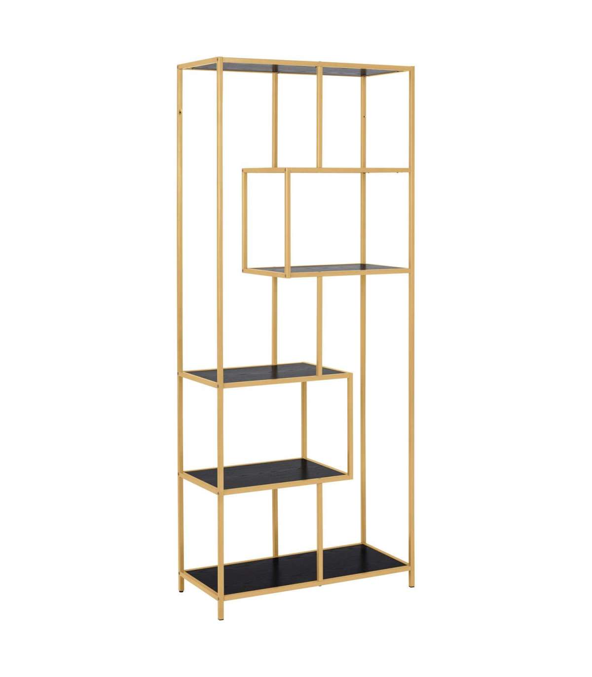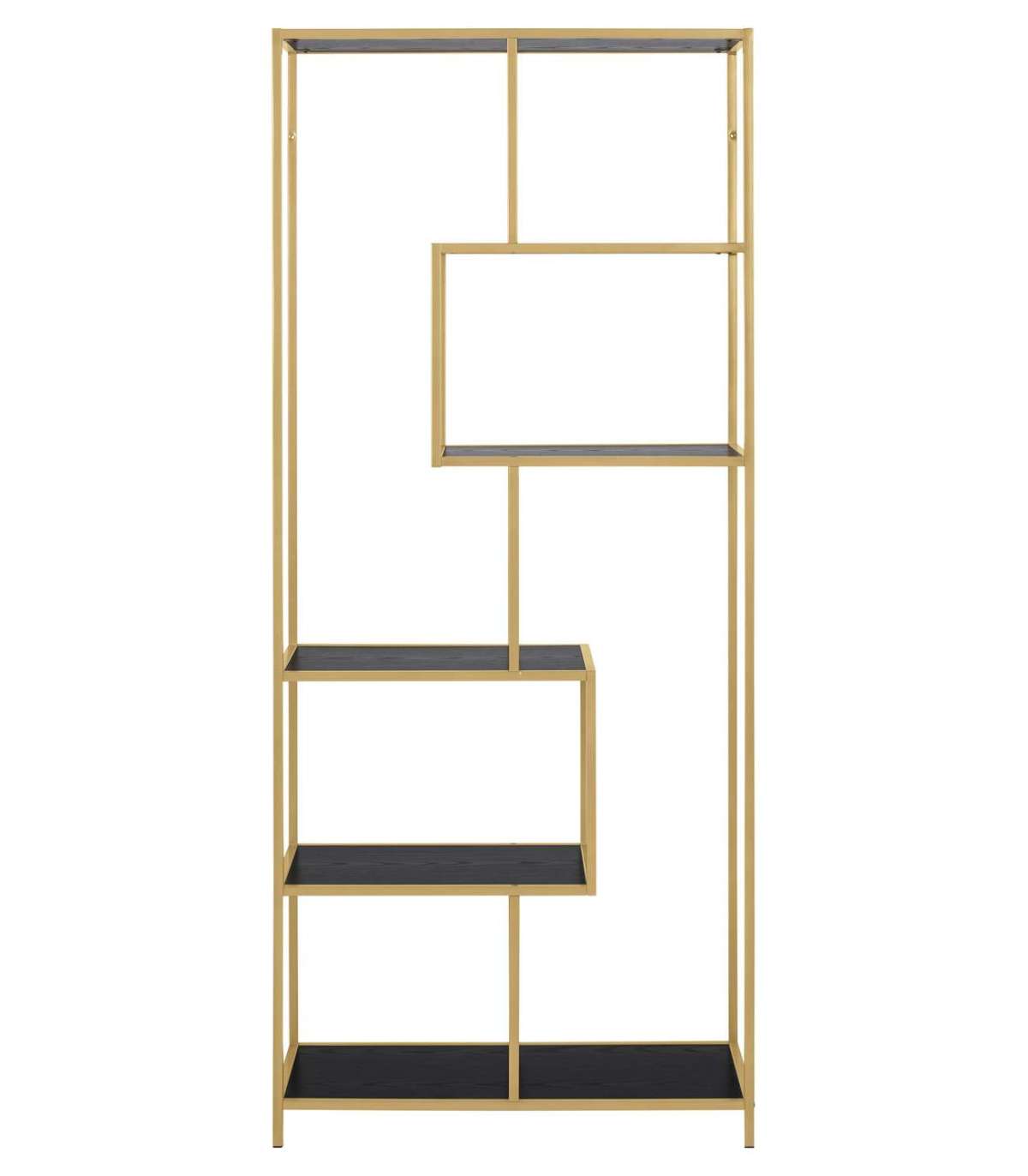Riiul SEAFORD 77x35xH185cm, must/kuldne