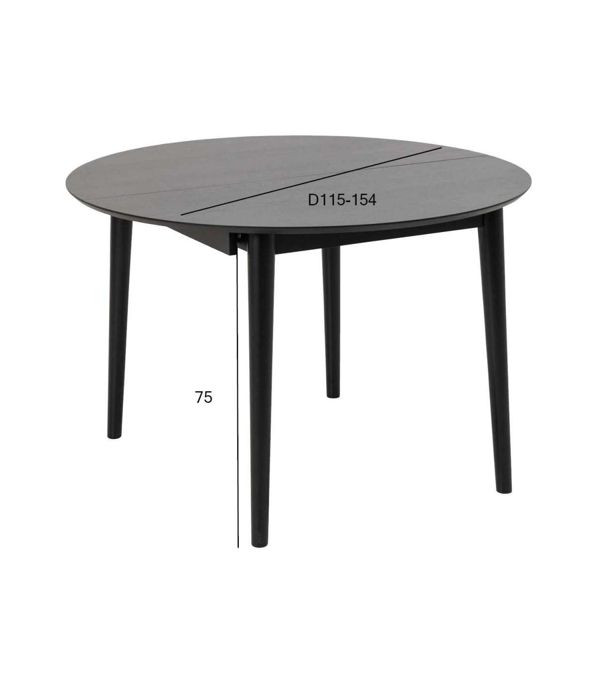 Söögilaud MONTREUX D115/154xH75cm, must