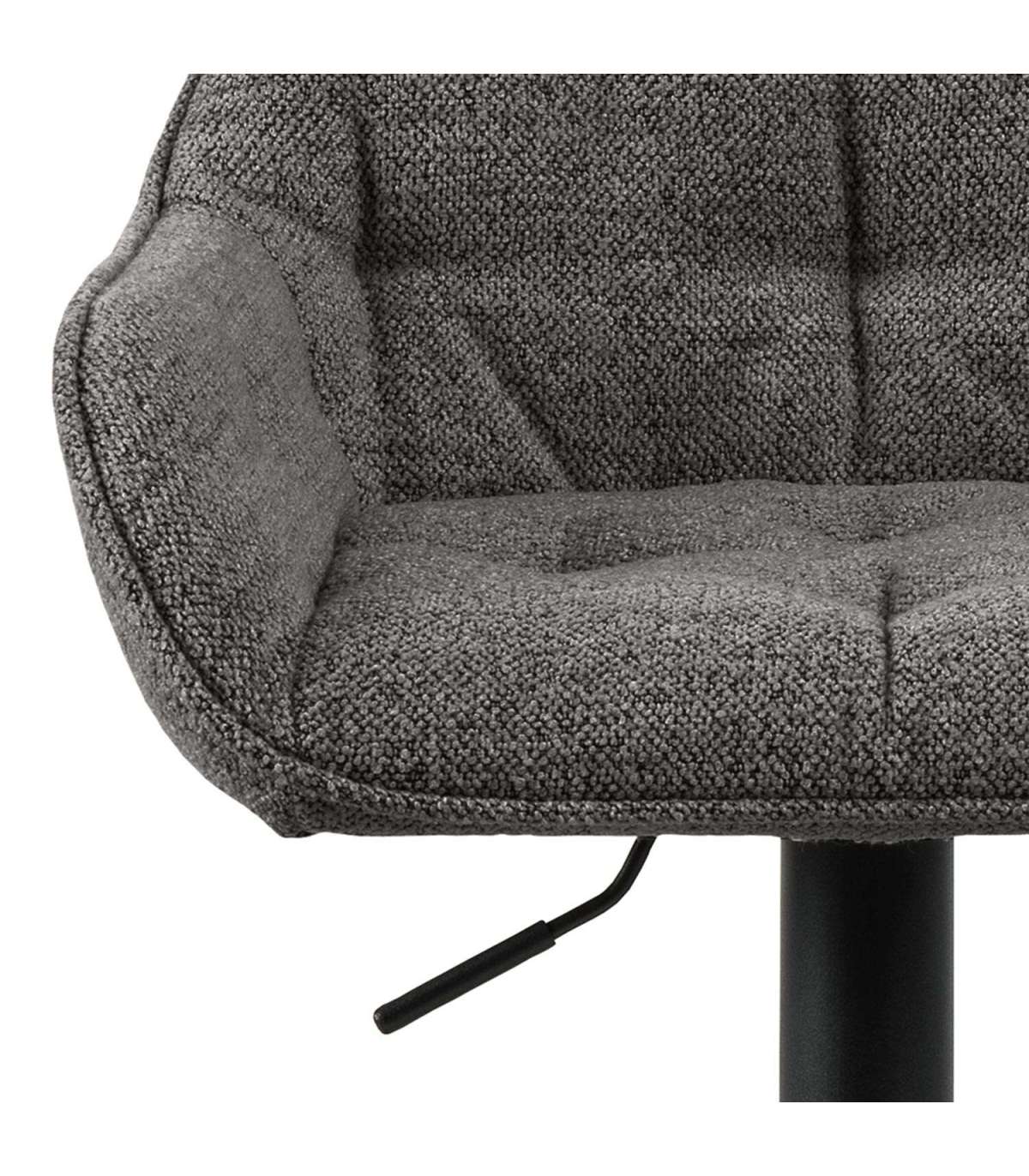 Baaritool on ideaalne lisandus igasse kööki, kas hommikuse kohvi või pärastlõunaste jookide nautimiseks. Baaritool on polsterdatud pehme antratsiithalli bukleekangaga, millel on luksuslik tekstuur. Baaritoolil on must terasest jalg. Sellel on jalatugi, pöörlev funktsioon ja gaasitõstuk. Istme kõrgust saab reguleerida 63–84cm. Mõõdud on 52x52xH109cm.