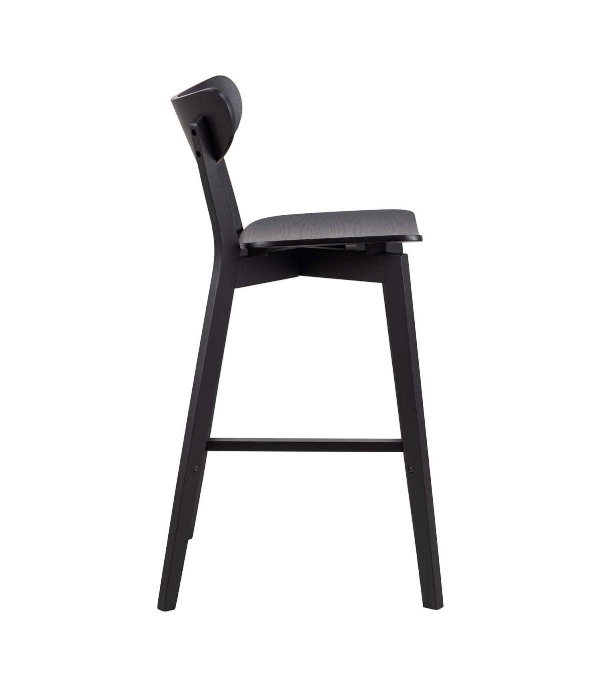 Ekspressiivne baaritool on retrohõngulise, kuid siiski kaasaegse esteetikaga, mis muudab disaini põnevaks. Mustaks lakitud tammespoonist iste ja puidust alus annavad baaritoolile elegantse välimuse. Istumine on mugav tänu kumerale seljatoele ja jalatoele, kus jalgu puhata. Mustaks lakitud puidust alus. Mõõdud 45x49xH105cm.