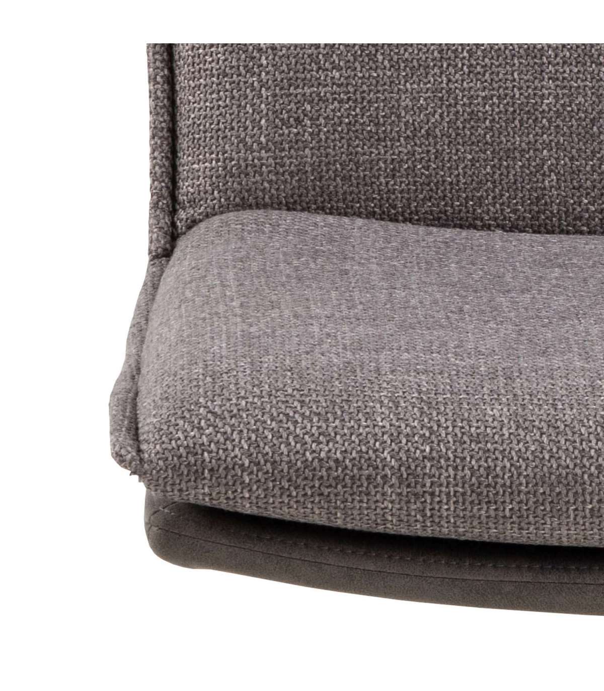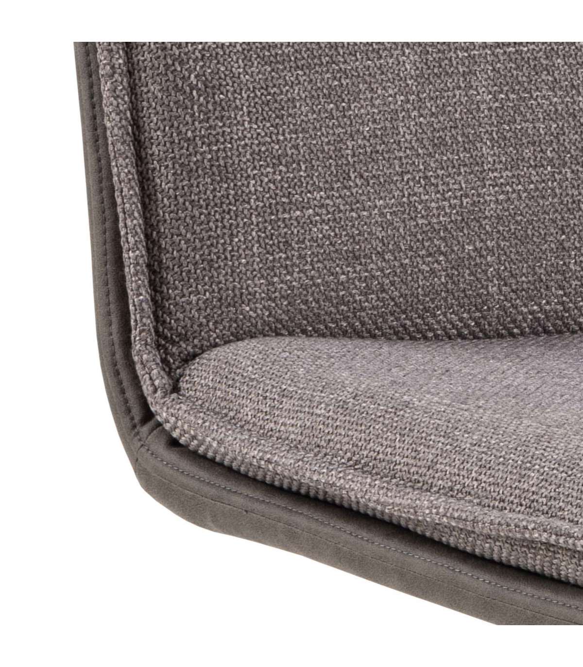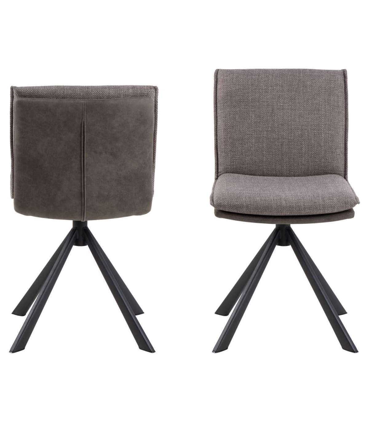 Moodne pöörlev söögitool. Iseloomulik kahevärviline iste koos padjaga. Kahetoonilise efektiga helehalli-pruuni kangaga polsterdatud. Padjal õmblused. Must pulbervärvitud alus, pöörlev. Toote mõõdud on 47x59xH85cm.