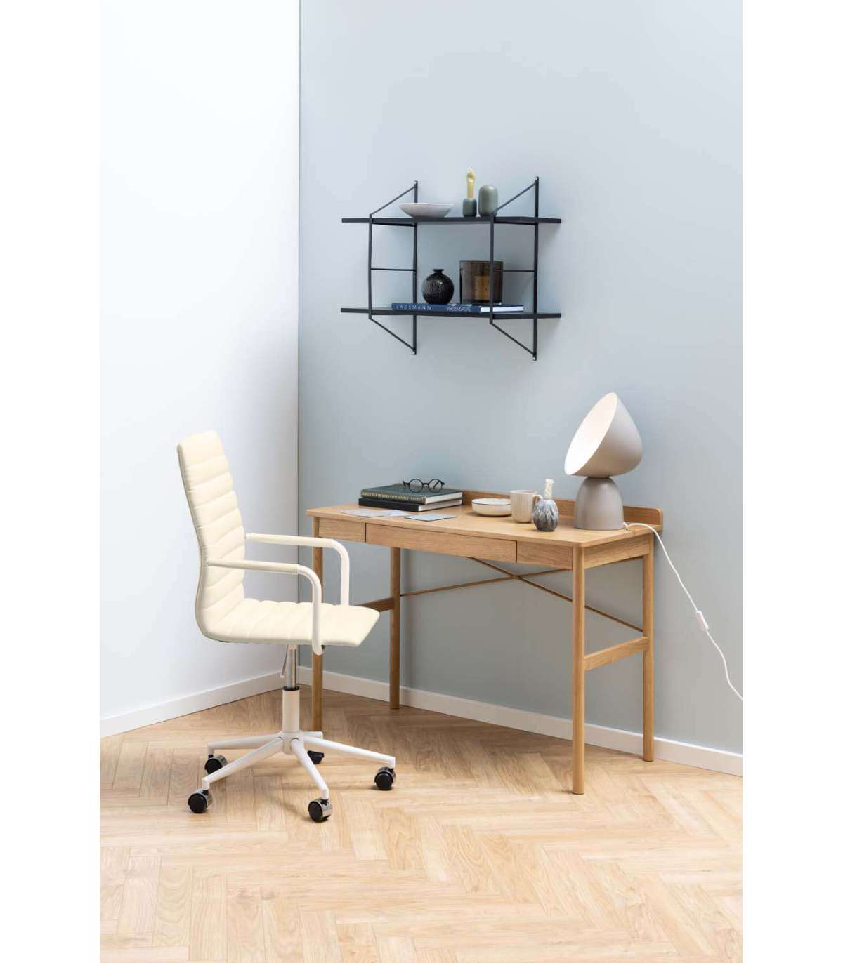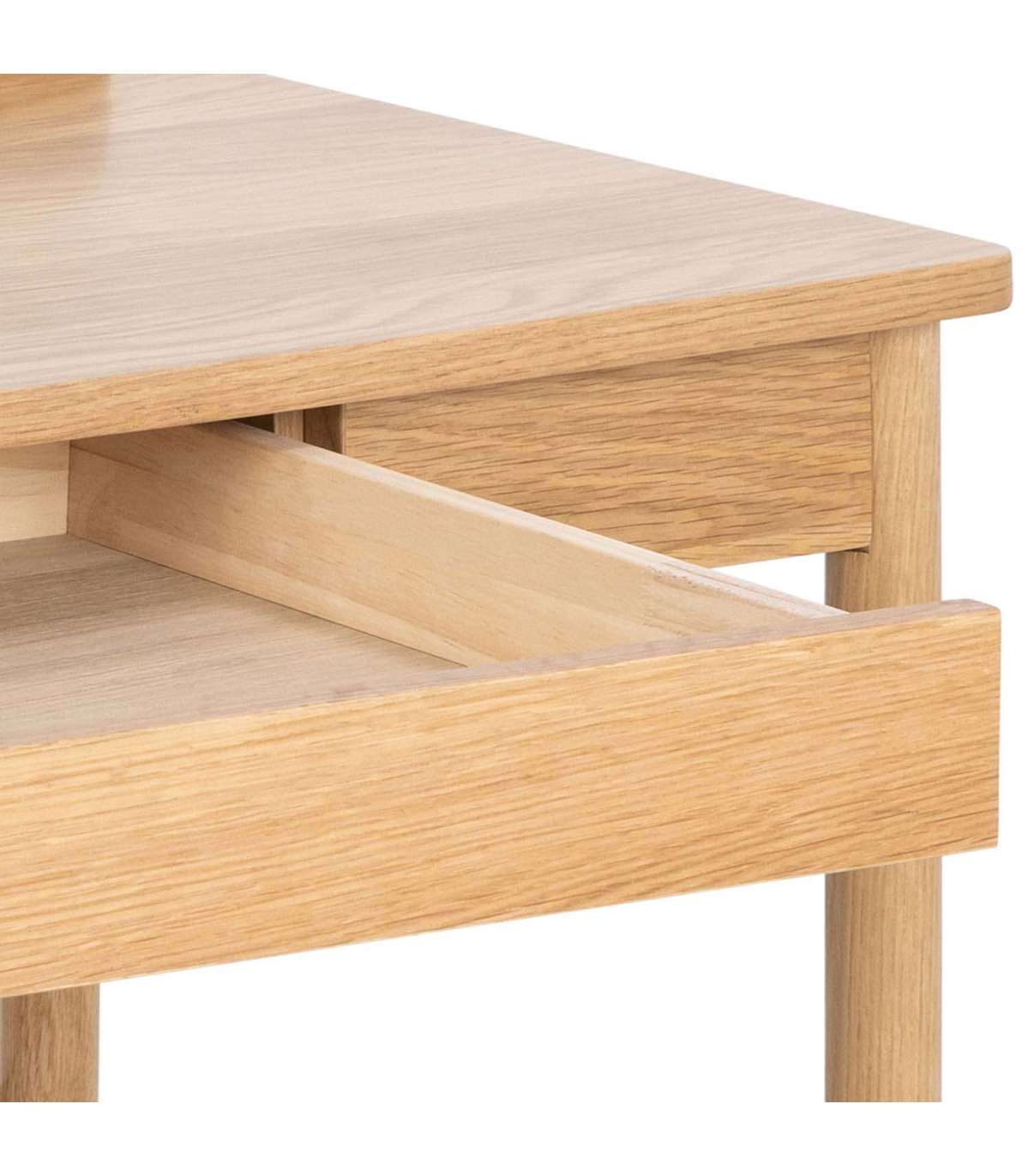 Skandinaavia esteetikast inspireeritud laud muudab iga kodukontori soojemaks ja hubasemaks. Tammevineeri lakitud pind rõhutab laua vormi ja loob samal ajal rahuliku atmosfääri. Praktilisust lisab sahtel, mida on mugav oluliste asjade jaoks kasutada, et tööpind püsiks korras. Selline laud muudab töötamise meeldivamaks. Mõõdud on 110x50xH80cm.