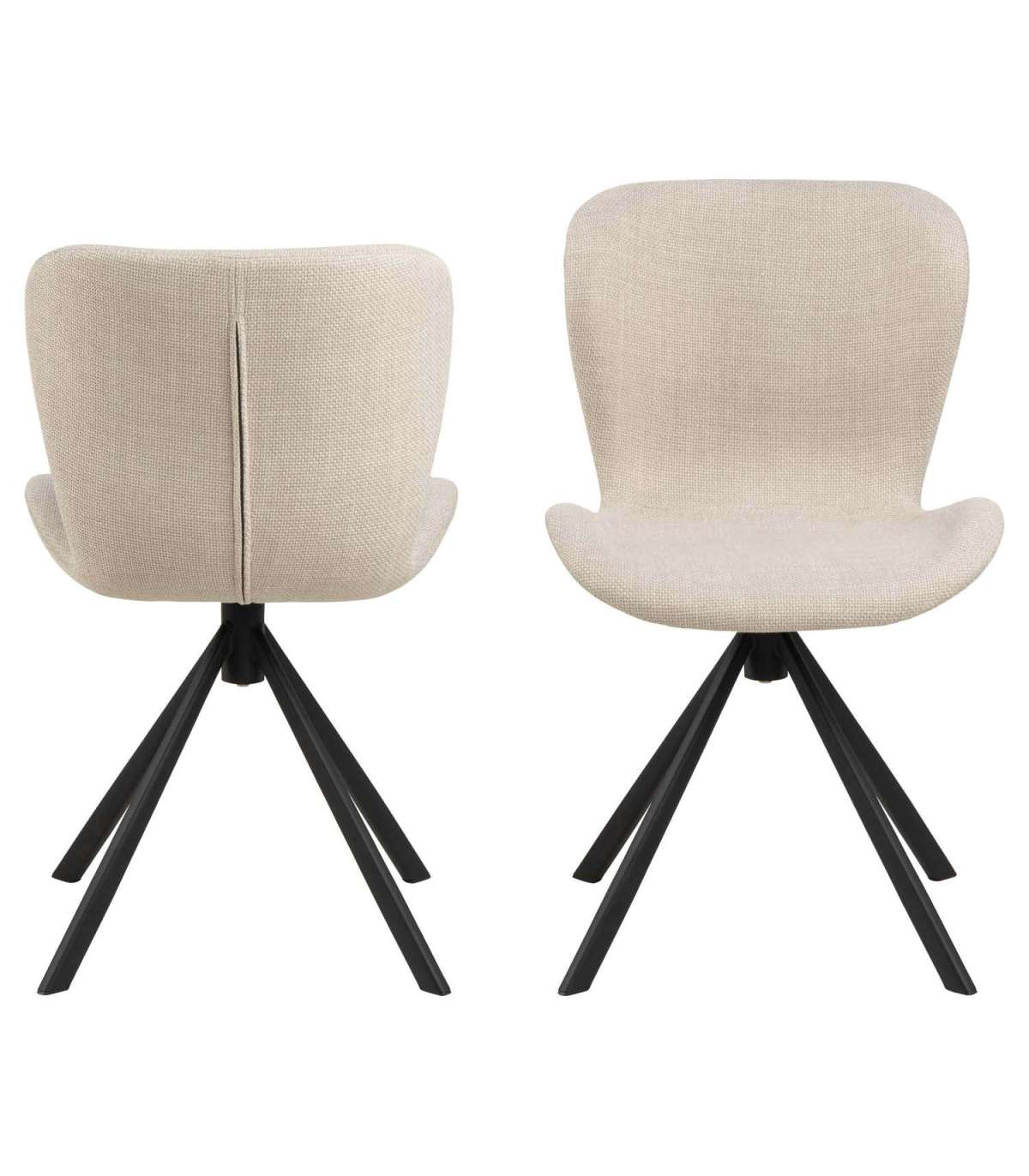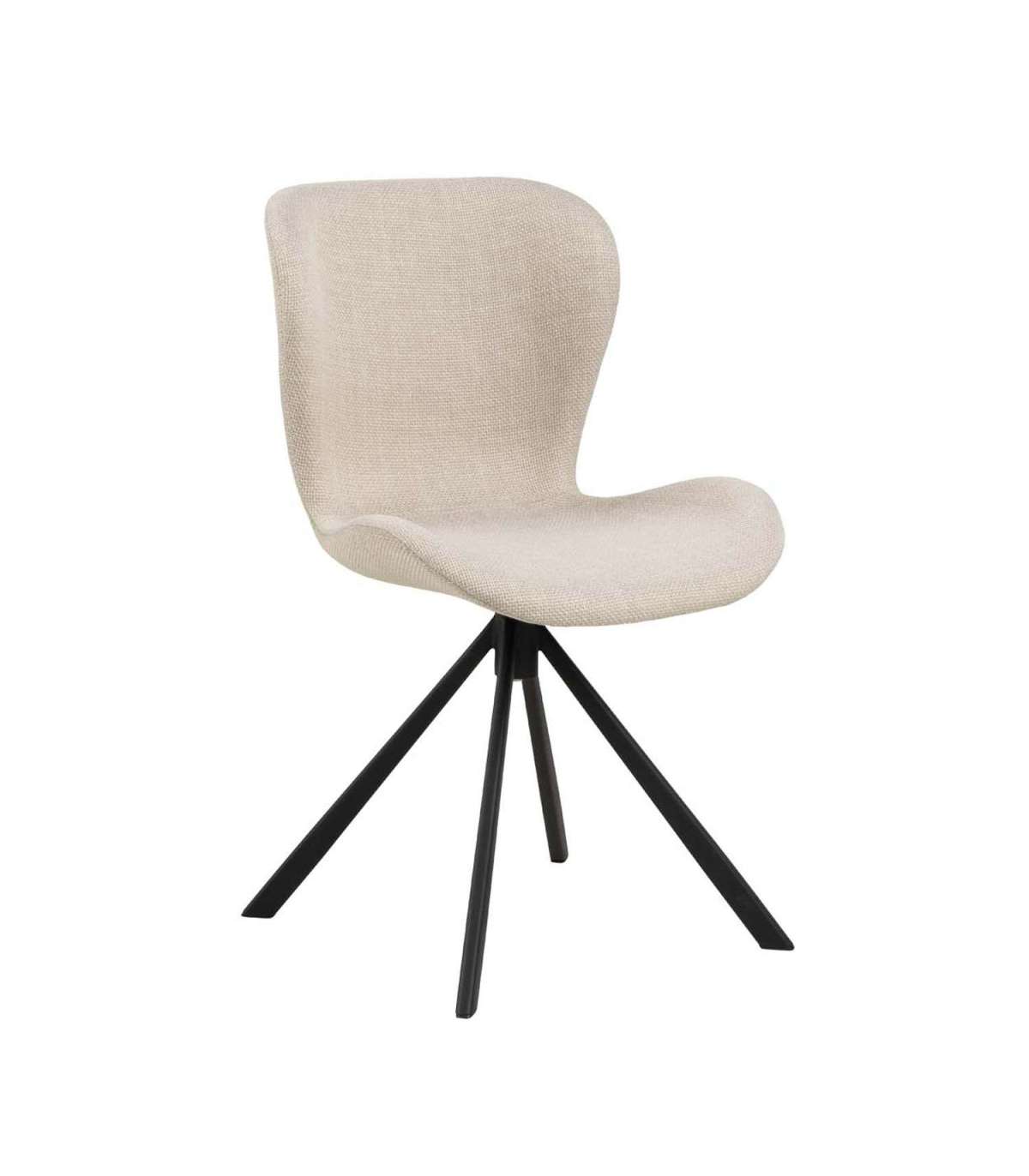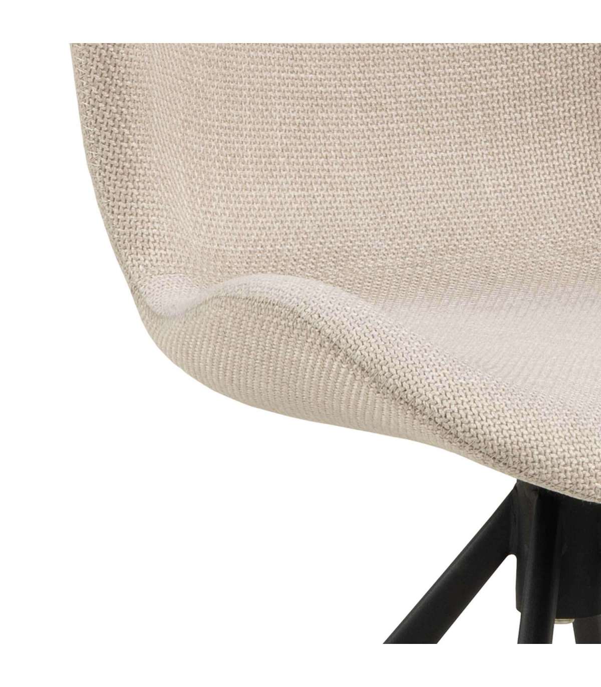 Pehme ja mugav söögitool. Orgaanilise kujuga seljatugi muudab istumise mugavamaks. Polsterdatud kahetoonilise efektiga beeži kangaga. Iste kaunistatud siksak-õmblustega. Must pulbervärvitud metallist alus, pöörlev. Toote mõõdud on 46,5x53xH81cm.