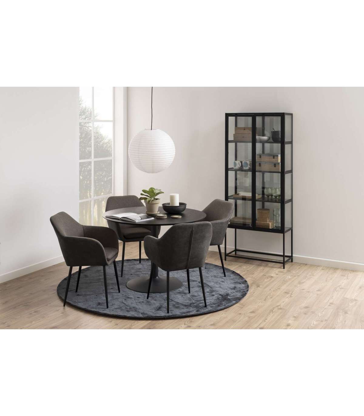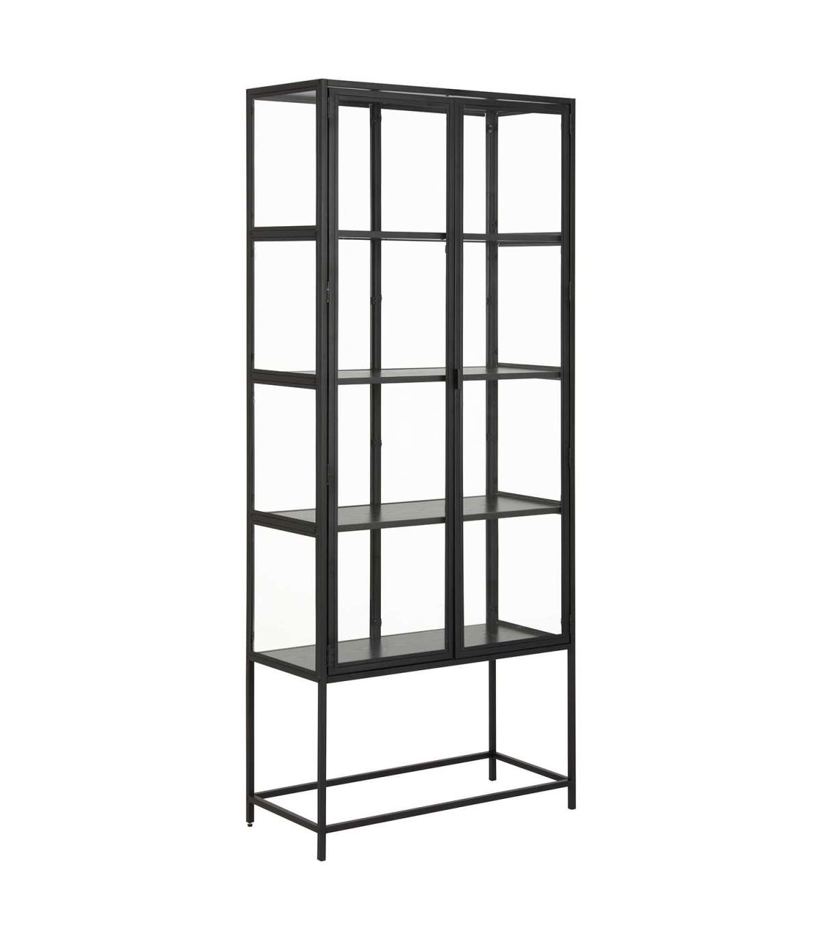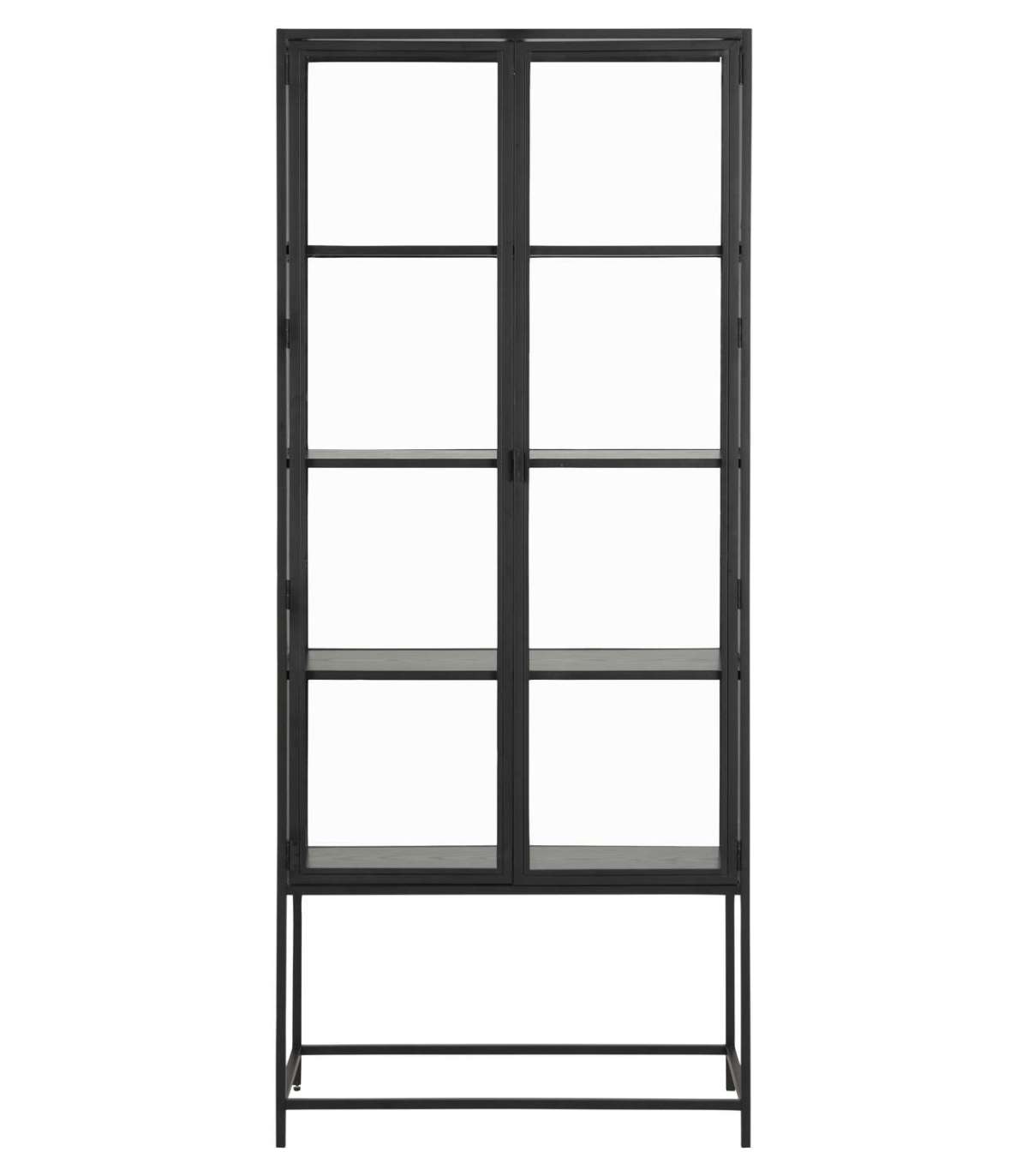 Mitmekülgne vitriinkapp, mis sobib erinevatesse interjööridesse. Ideaalne lisandus kööki või elutuppa. Neli riiulit võimaldavad olulisi asju stiilselt klaasuste taga hoida. Must pulbervärvitud metallraam annab kapile tööstusliku tunde. HOOLDUS: Kasutage igapäevaseks puhastamiseks seebivees tugevasti väänatud lappi. Rooste vältimiseks pühkige pind kuivaks. Ärge hõõruge pinda kõvade esemetega.