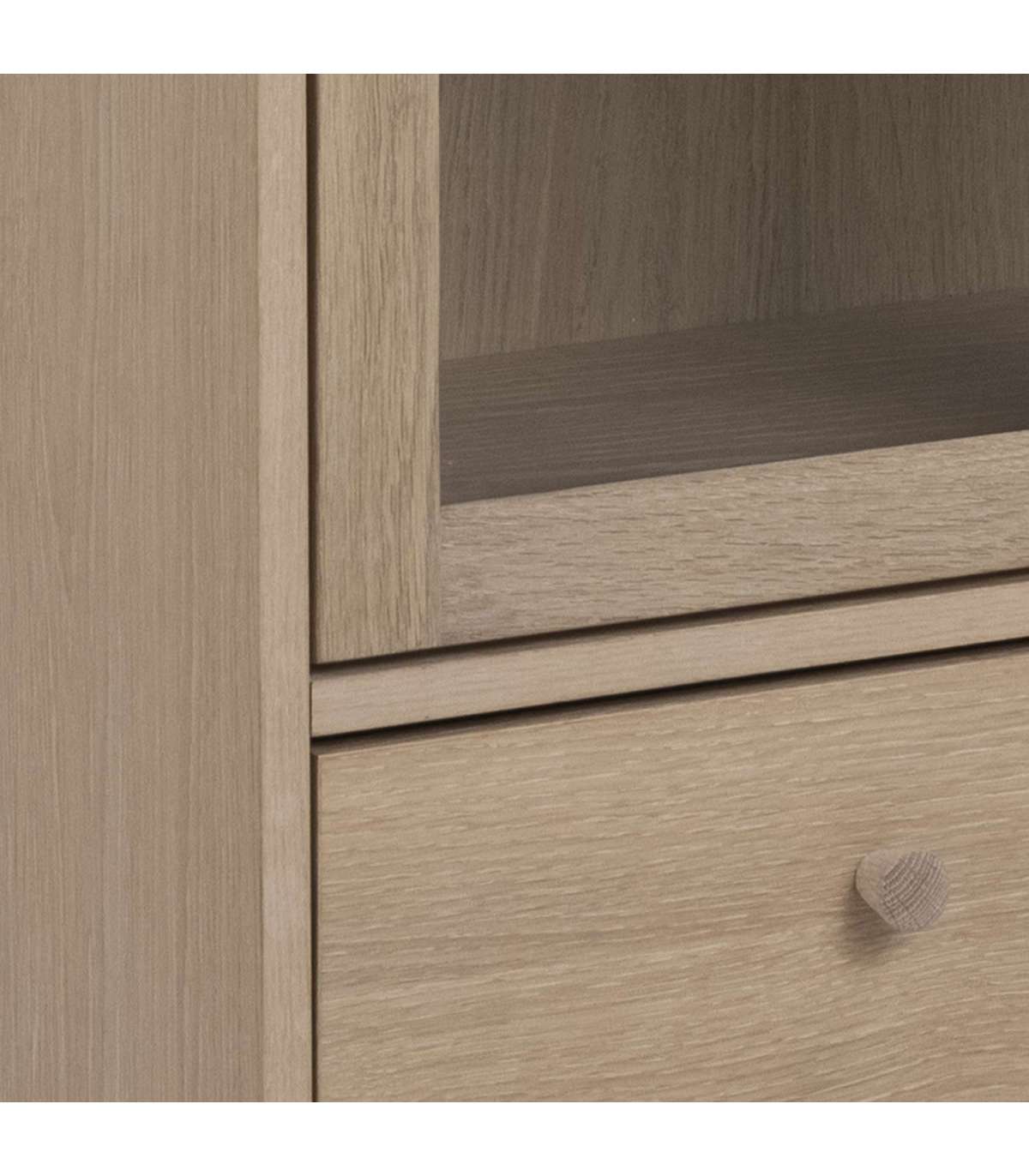 Täistammest ja tammespoonist valmistatud vitriinkapp on ideaalne valik, kui olete klassikalise Skandinaavia disaini austaja. Klaasuste taga on 2 vitriinriiulit, mis jätavad sahtli vabaks väiksemate esemete jaoks. Reguleeritavad riiulid vastavalt teie vajadustele, iga riiuli kaalumisvõime on 15kg. HOOLDUS: kõik plekid tuleb koheselt eemaldada niiske lapiga. Klaasialused ja lauamatid aitavad vältida pinnakahjustusi.