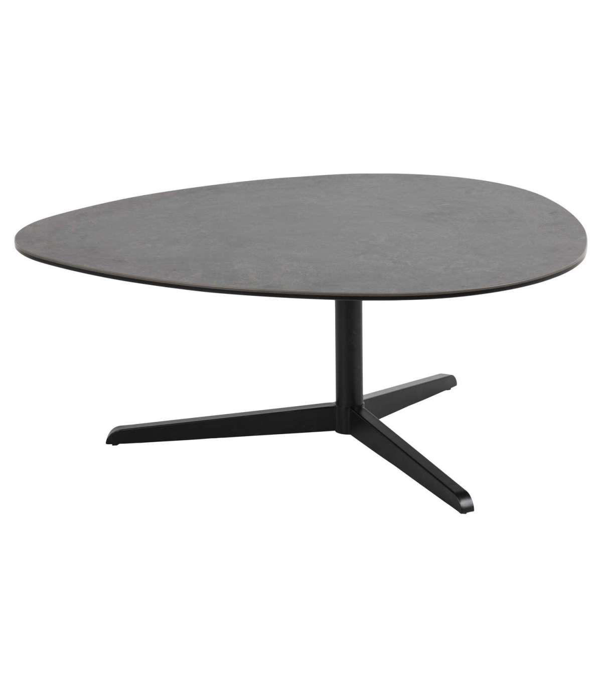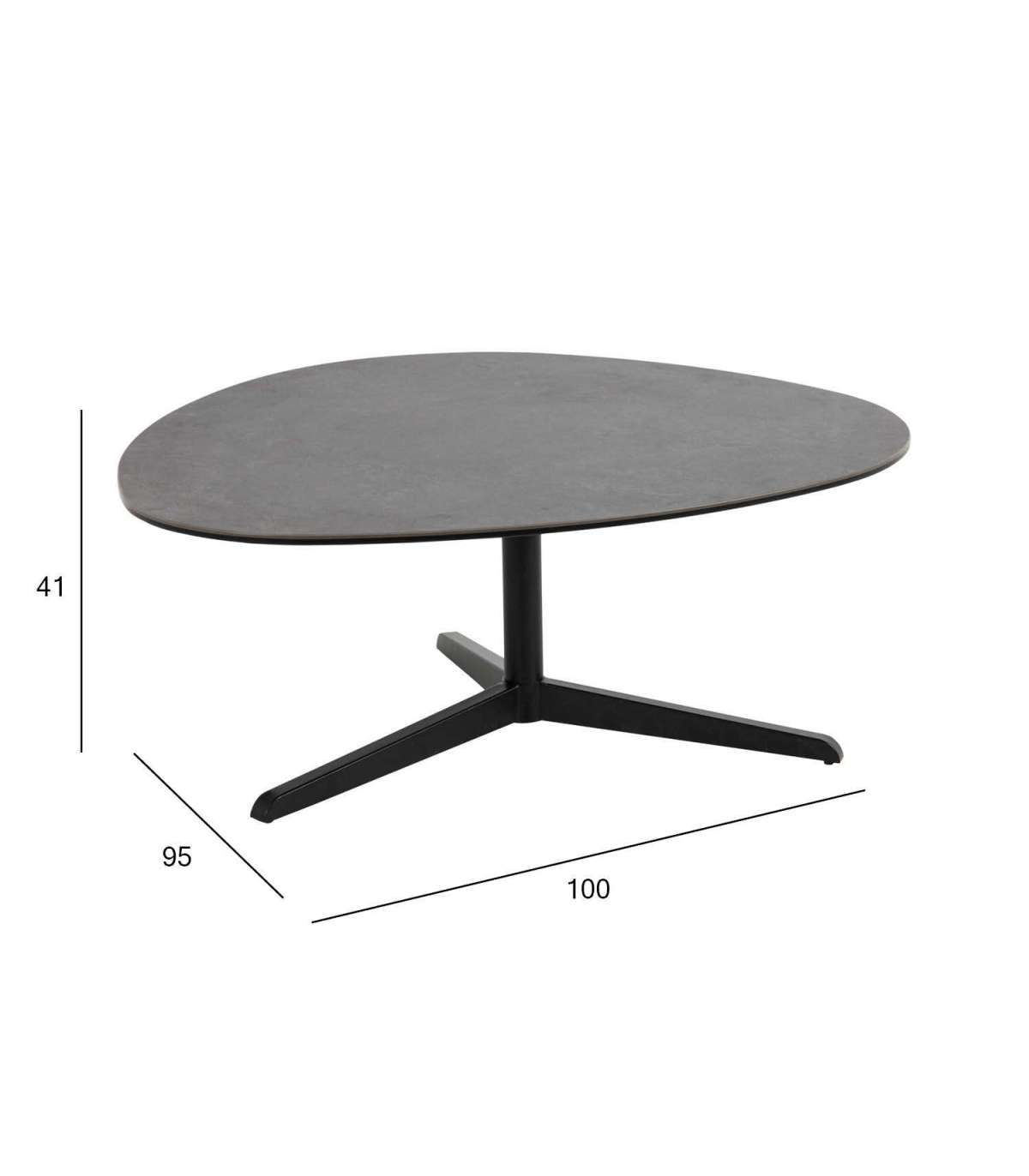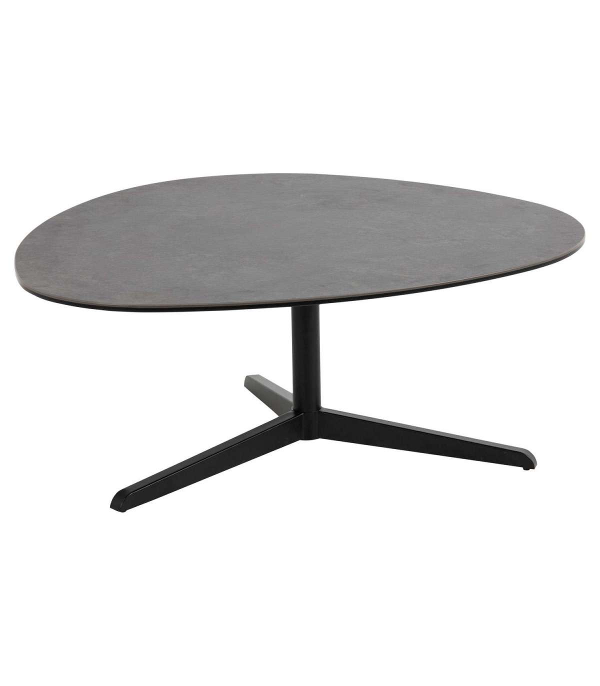 Kohvilaud ühendab kaasaegse disaini funktsionaalsusega. Kumer kolmnurkne kuju lisab stiili igasse eluruumi. Lauaplaat on valmistatud keraamikast, mis muudab selle kuuma- ja kriimustuskindlaks. Pulbervärvitud metallist alus. HOOLDUS: Pühkige pinda tugevasti väänatud kiudlapiga või paberrätikuga. Pinnakahjustuste vältimiseks kasutage klaasialuseid ja lauamatte. Rooste vältimiseks pühkige pind lapiga kuivaks. Ärge hõõruge pinda kõvade esemetega.