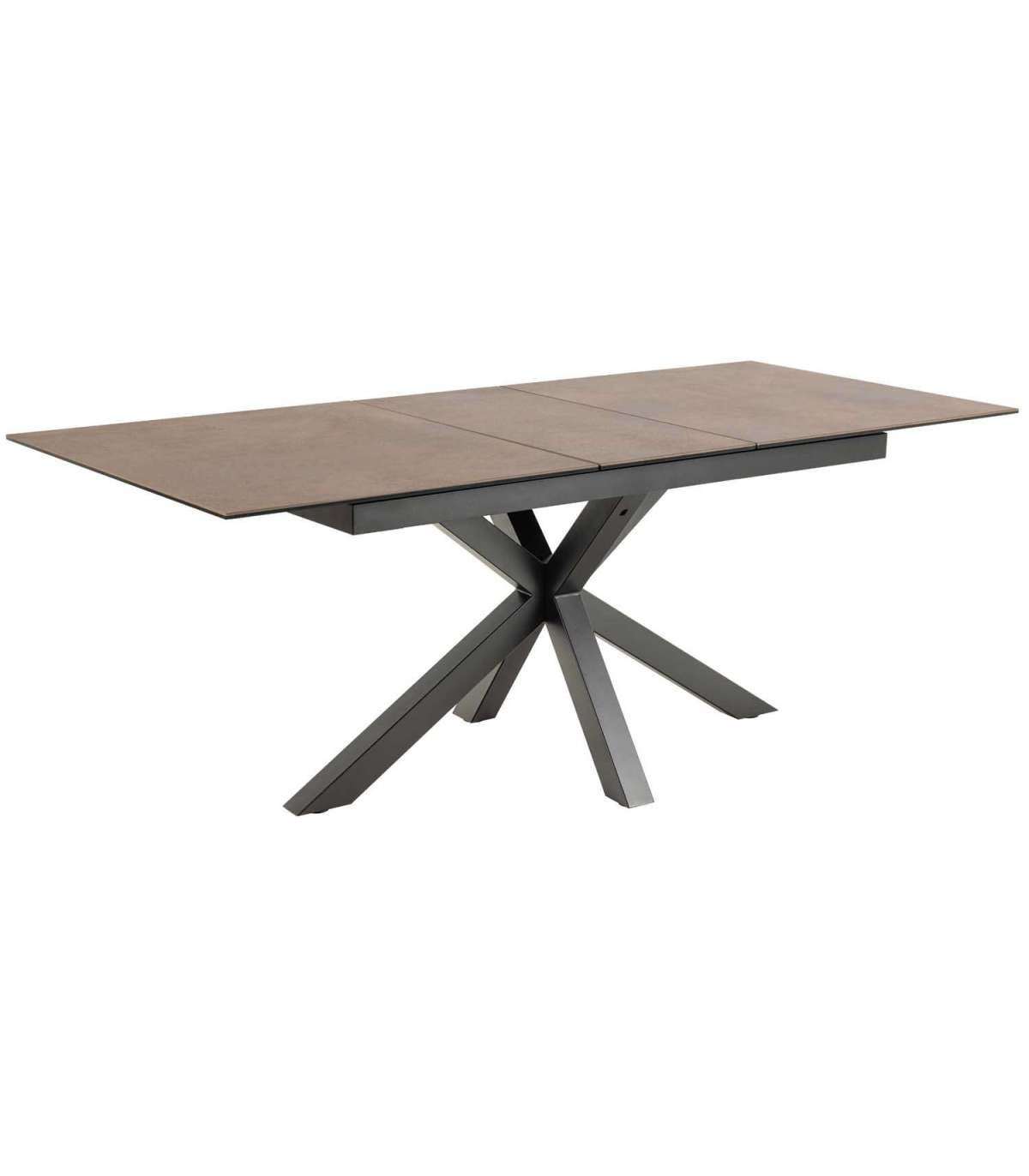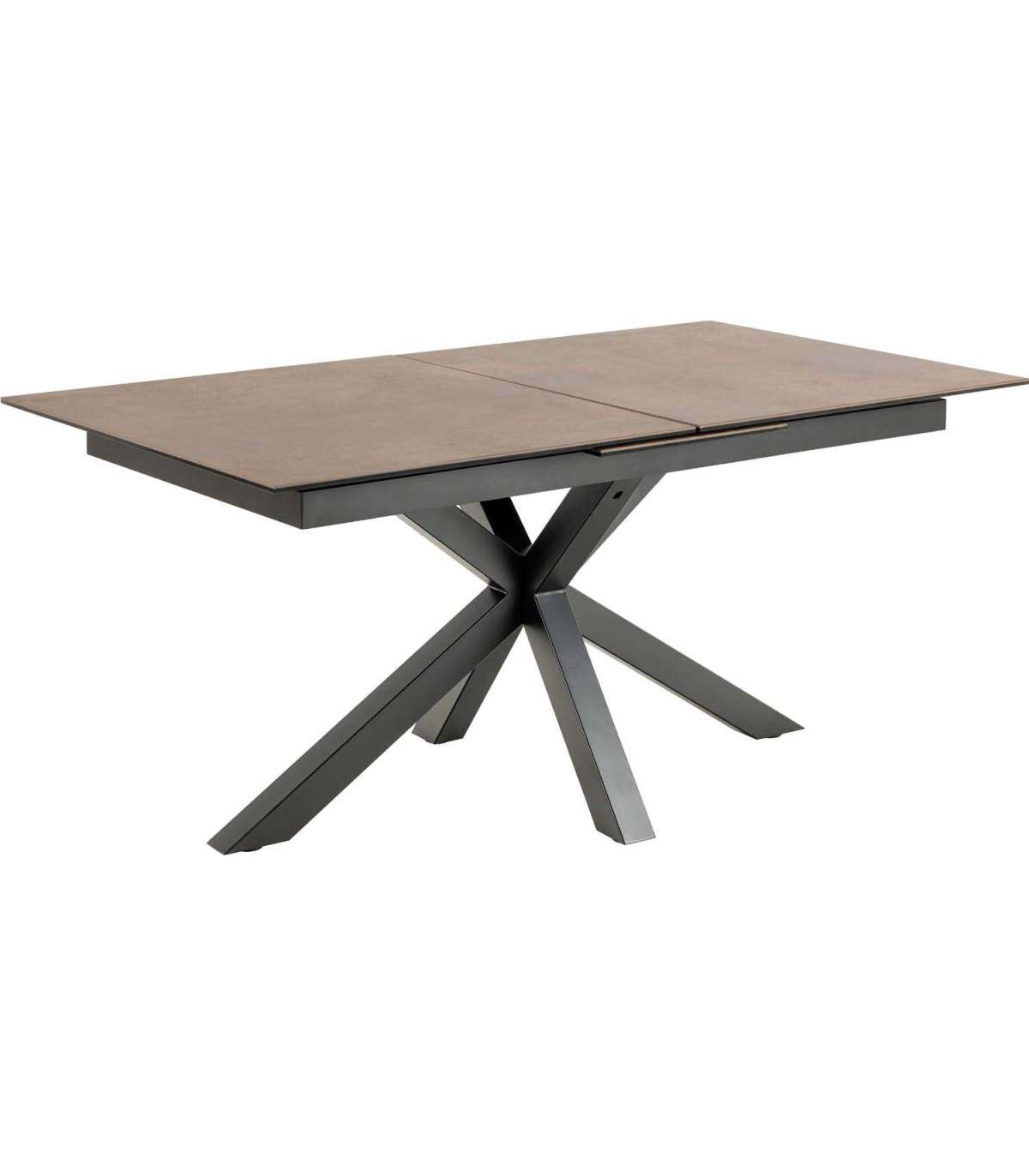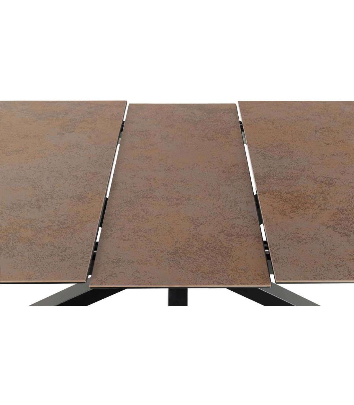 Praktiline ja kaasaegne söögilaud. Kuumus- ja kriimustuskindel roostepruun keraamiline lauaplaat. Laua juurde kuulub keraamiline pikendusplaat. Panipaik pikendusplaadi jaoks, kui seda ei kasutata. Laual on must pulbervärvitud metallist ristalus. Pikendatuna mahutab laud mugavalt 8 inimest. Toote mõõdud on 168/210x90xH76cm.