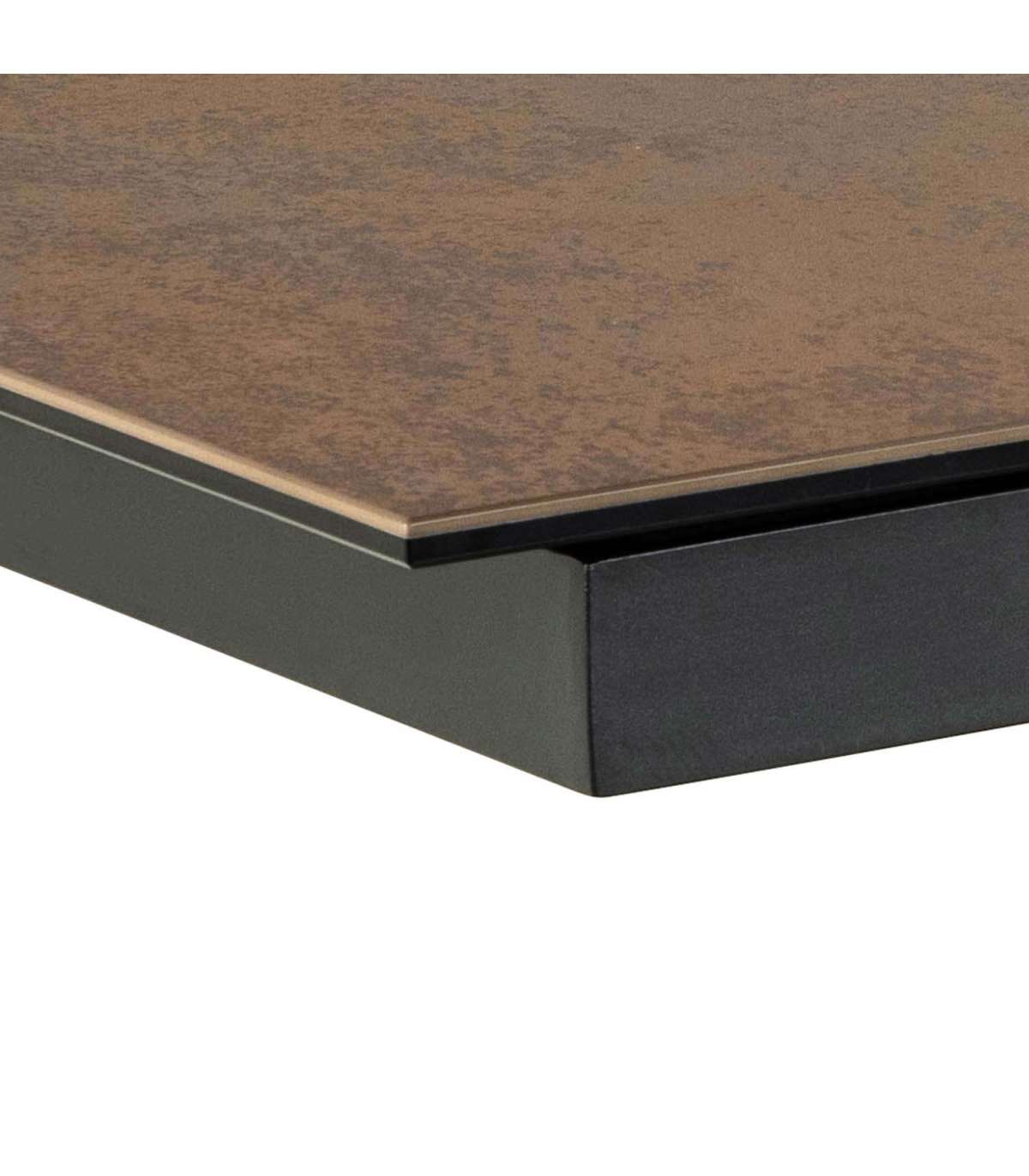 Kaasaegne ja praktiline söögilaud. Kuumus- ja kriimustuskindel roostepruun keraamiline lauaplaat. Laua juurde kuulub keraamiline pikendusplaat. Panipaik pikendusplaadi jaoks, kui seda ei kasutata. Must pulbervärvitud metallist ristalus. Pikendatuna mahutab mugavalt 10 inimest. Toote mõõdud on 200/240x100xH76cm.