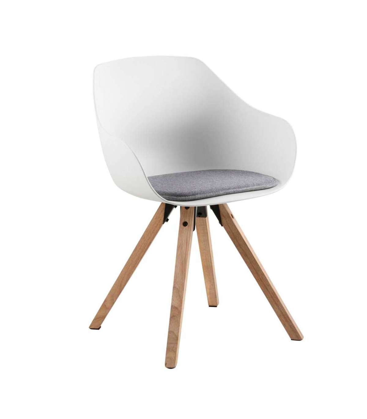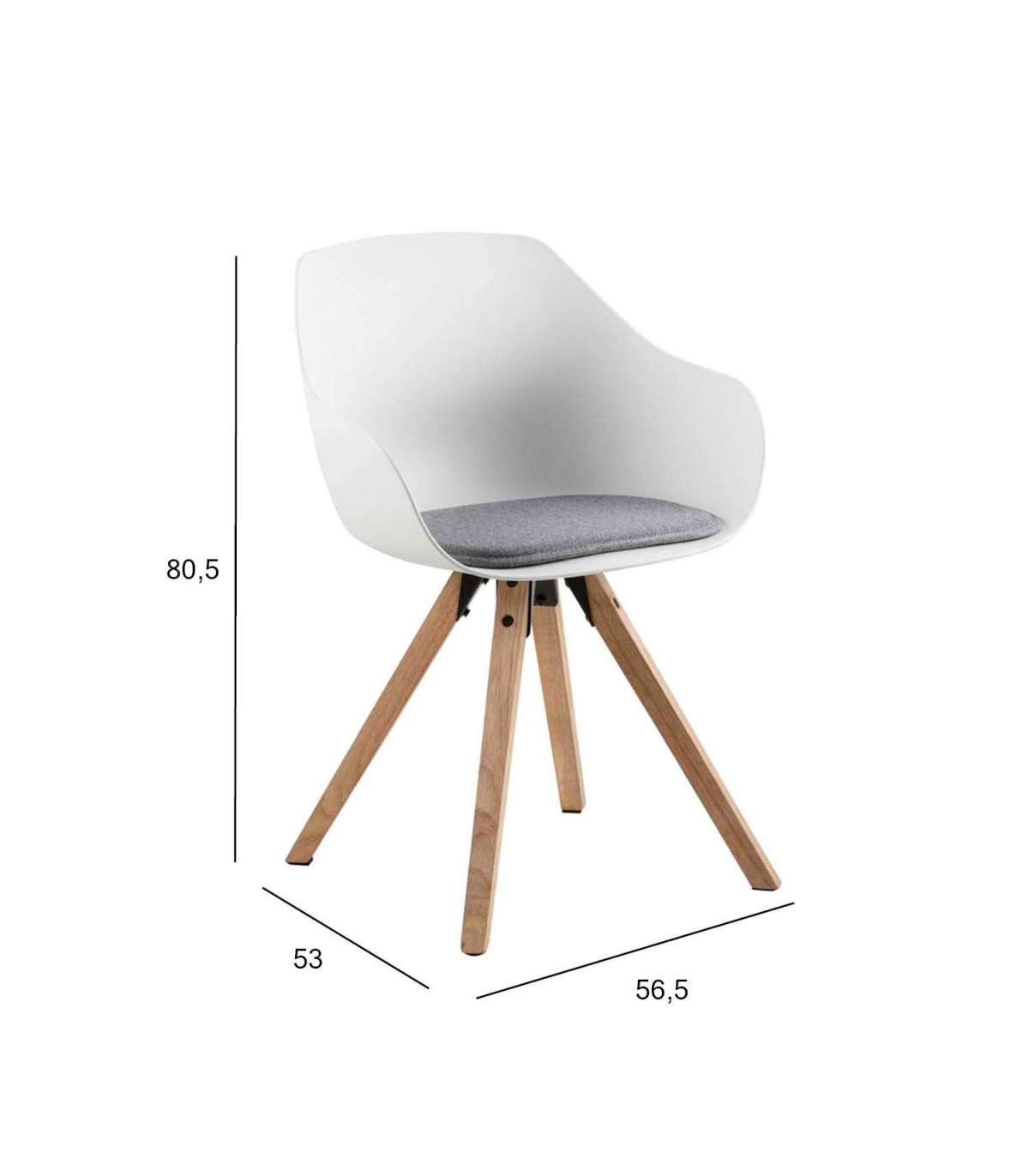 Söögitooli kumerused annavad sellele kaasaegse välimuse. Tänu lahtisele istmepadjale, siledale pinnale ja disaini puhastele joontele on tooli lihtne hooldada. Materjal: plastik, valge, jalad: kummipuit, õlitatud. Istme laius 42cm, istme sügavus 44cm, istme kõrgus 48,5cm. Mõõdud 56,5x53xH80,5cm.