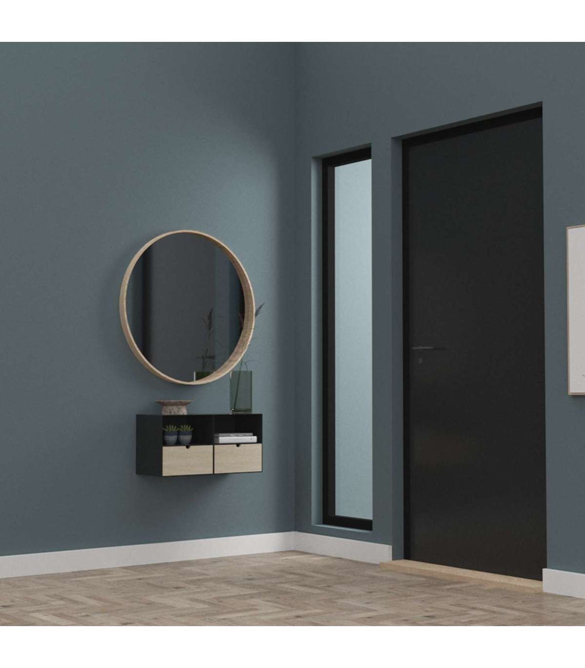 Полка настенная JOLIET 30x25xH30см. С 1 бамбуковым ящиком, рама: металл, покрытый порошковой краской, черный матовый.