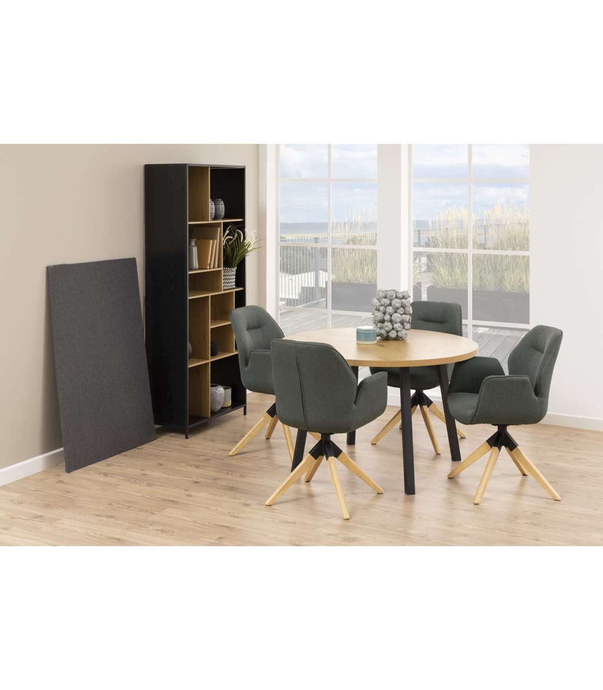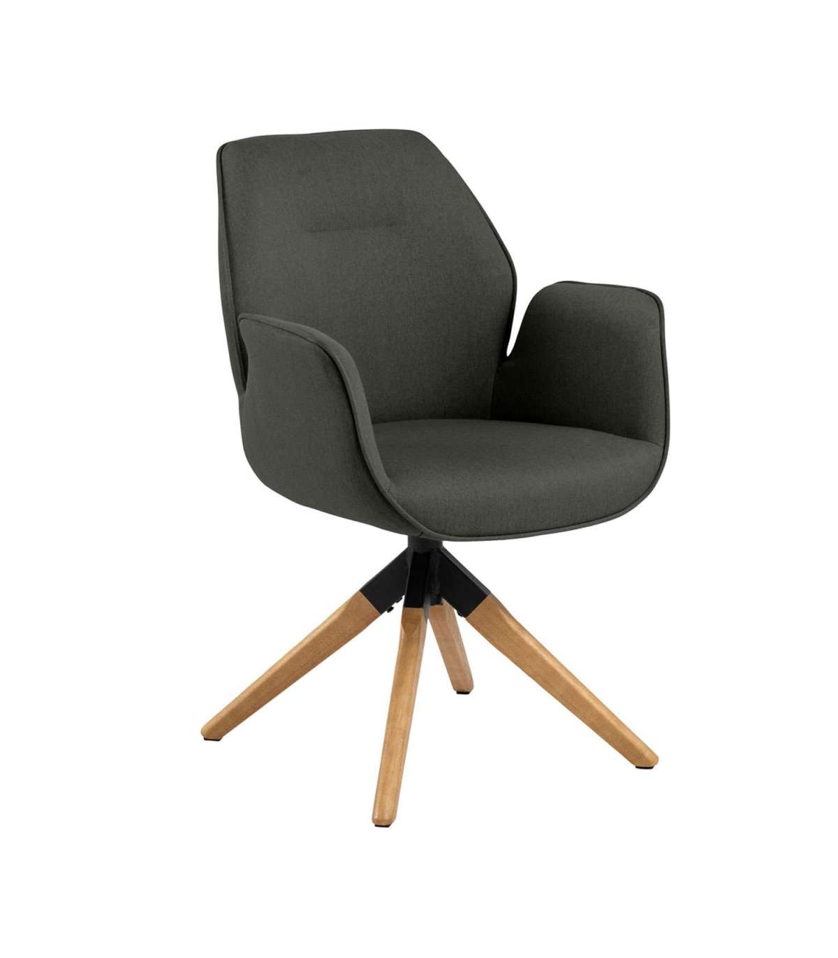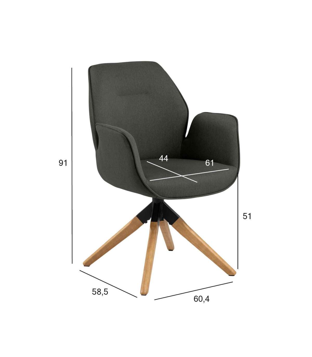Elegantsel käetugedega söögitoolil on maitsekas siluett. Tool on stiilne lisandus igasse söögituppa. Polsterdatud iste võimaldab tundide kaupa mugavalt istuda. Tamme tooni õlitatud puitjalad. Toote mõõdud on 60,5x58,5xH91cm. HOOLDUS: Hooldus piirdub tolmuimejaga ja plekieemaldamisega. Plekkide eemaldamisel tuleb olla ettevaatlik. Katsetage plekieemaldajaid esmalt vähem nähtaval alal ja tegutsege vastavalt tulemusele. Ärge kunagi kasutage lahusteid. Ärge asetage mööblit otsese päikesevalguse kätte. Aluse jaoks kasutage pehmes seebivees tugevalt väänatud lappi ja pühkige pind kindlasti kuivaks.